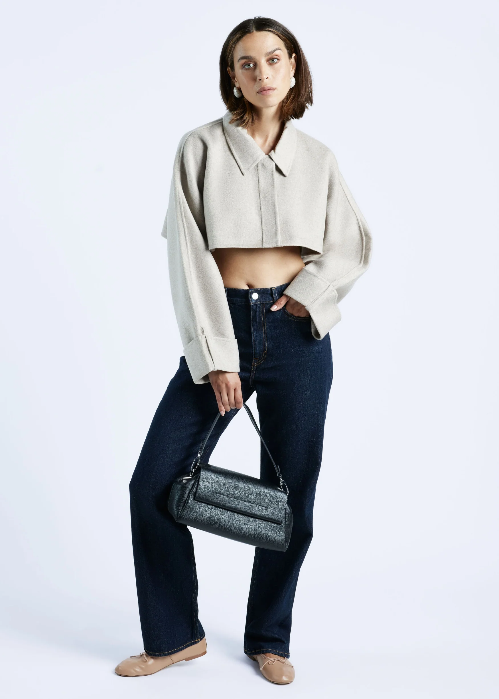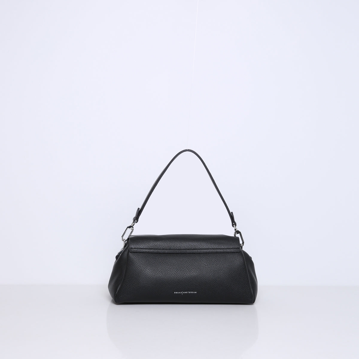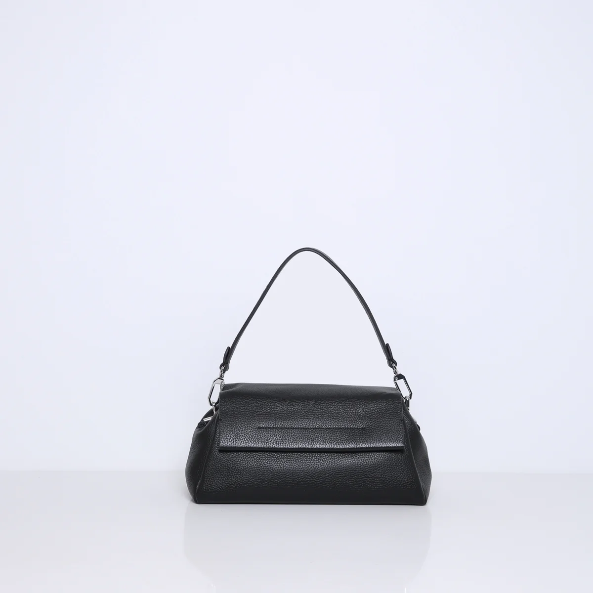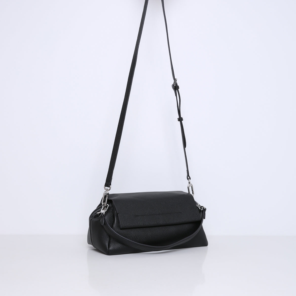 Die Tasche hat zwei abnehmbare Griffe, einen kurzen Schulterriemen und einen langen, längenverstellbaren Querriemen. Die Tasche ist aus weichem und geschmeidigem Rindsleder gefertigt und mit Veloursleder (Viskose) gefüttert.