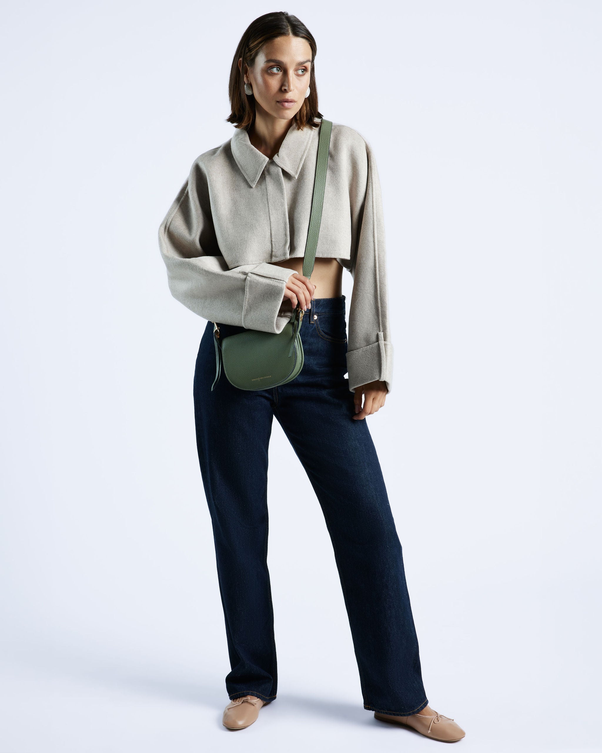 Die Tasche wird mit einer Klappe mit Magnetverschluss geschlossen, so dass Ihre persönlichen Gegenstände sicher aufbewahrt werden, aber auch leicht zugänglich sind. Der breite, abnehmbare Lederriemen ermöglicht es Ihnen, die Tasche auf die gewünschte Länge einzustellen und ist etwa 120 cm lang. Schöne Details sind die Lederfransen am Riemen und die runde Öse, an der der Riemen befestigt ist. Die Tasche ist aus weichem und geschmeidigem Rindsleder gefertigt.