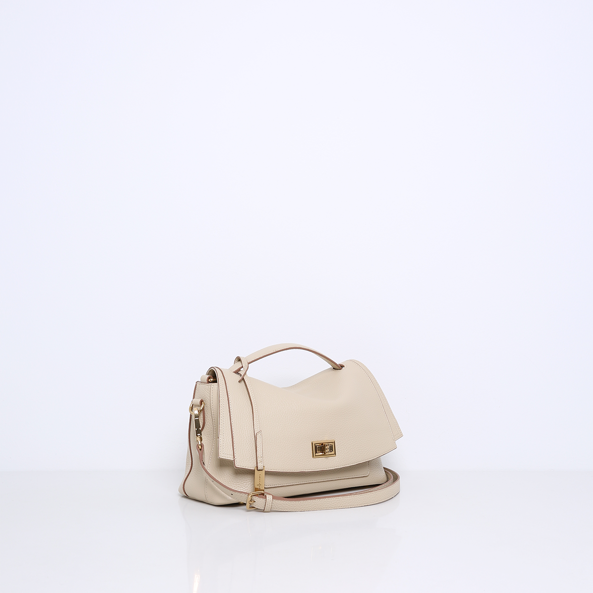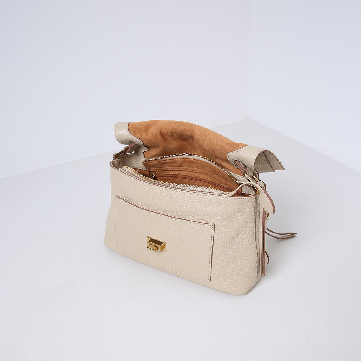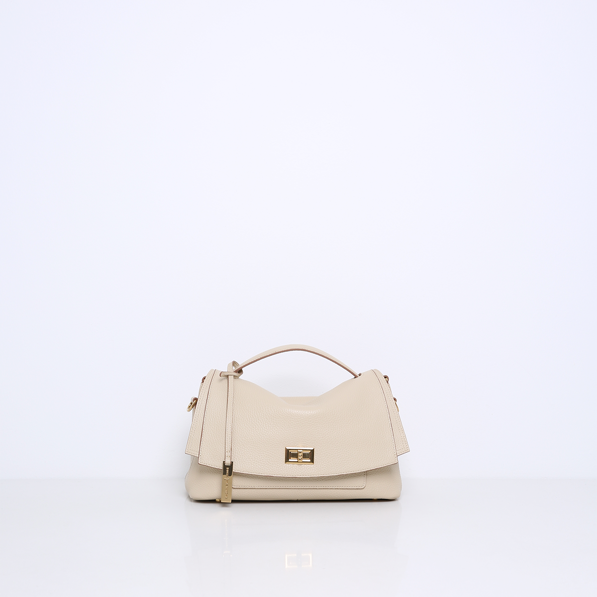 Die IDA ist eine feminine und klassische Handtasche. Der goldfarbene Drehverschluss an der Vorderseite verleiht der Tasche mit ihrer geschmeidigen Form einen eleganten Twist. In die IDA passt alles, was Sie brauchen, aber sie kann auch etwas mehr aufnehmen, wie eine Flasche Wasser oder einen faltbaren Regenschirm.