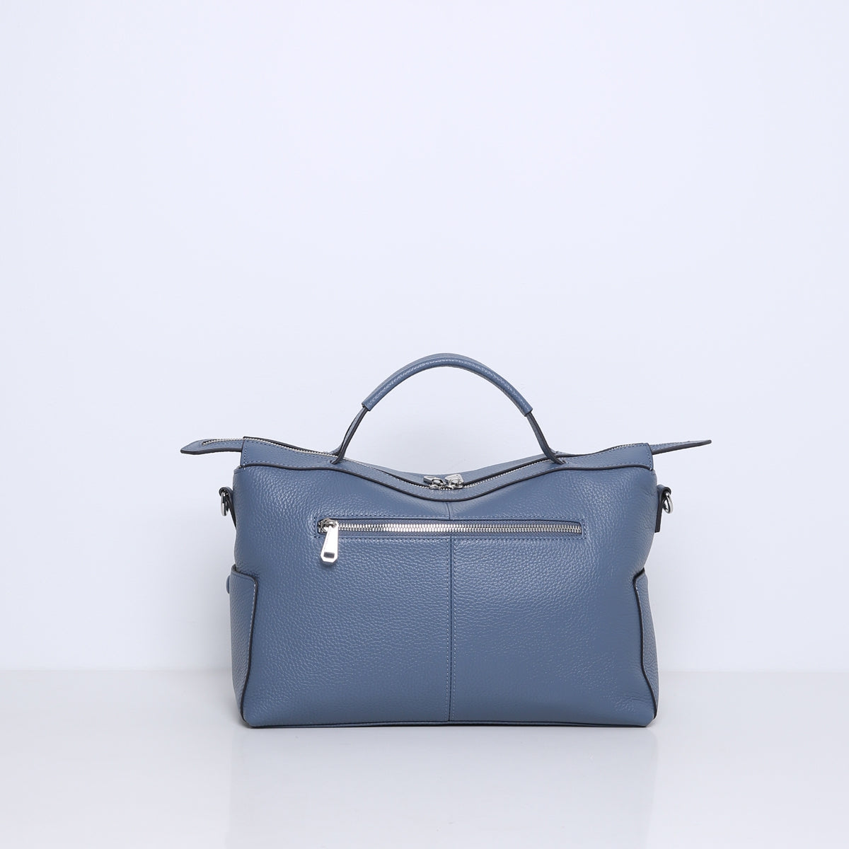 Die Tasche ist aus weichem, geschmeidigem Rindsleder gefertigt und wird oben mit einem Reißverschluss geschlossen.