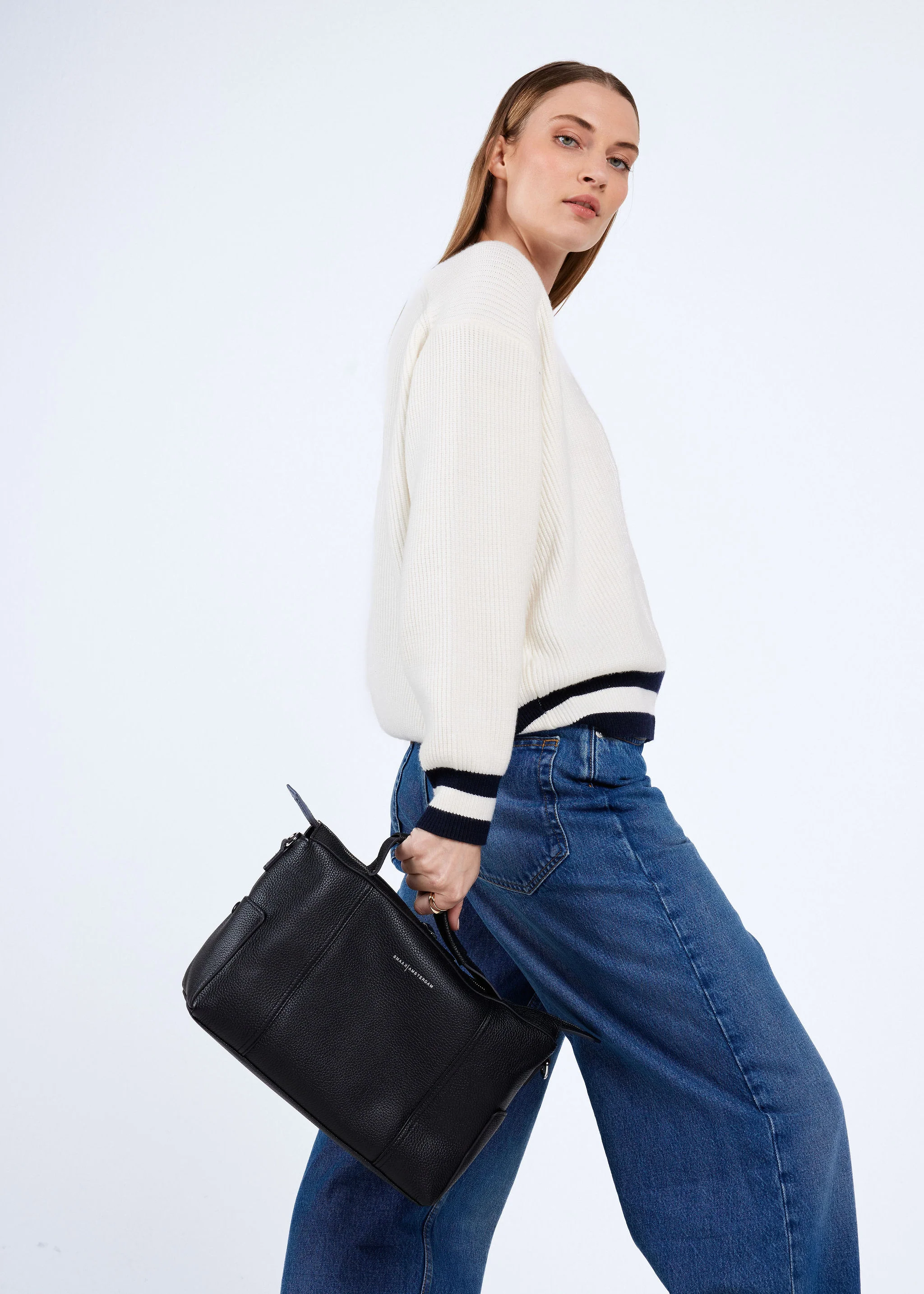 Mit ihrer geringeren Größe als die IKE ist die TONY eine zugängliche Handtasche, die Sie bei vielen Gelegenheiten verwenden können. Die Handtasche steht gut auf eigenen Füßen und die verschiedenen Fächer im Inneren ermöglichen es Ihnen, Ihre persönlichen Gegenstände leicht zu organisieren und ordentlich zu verteilen.