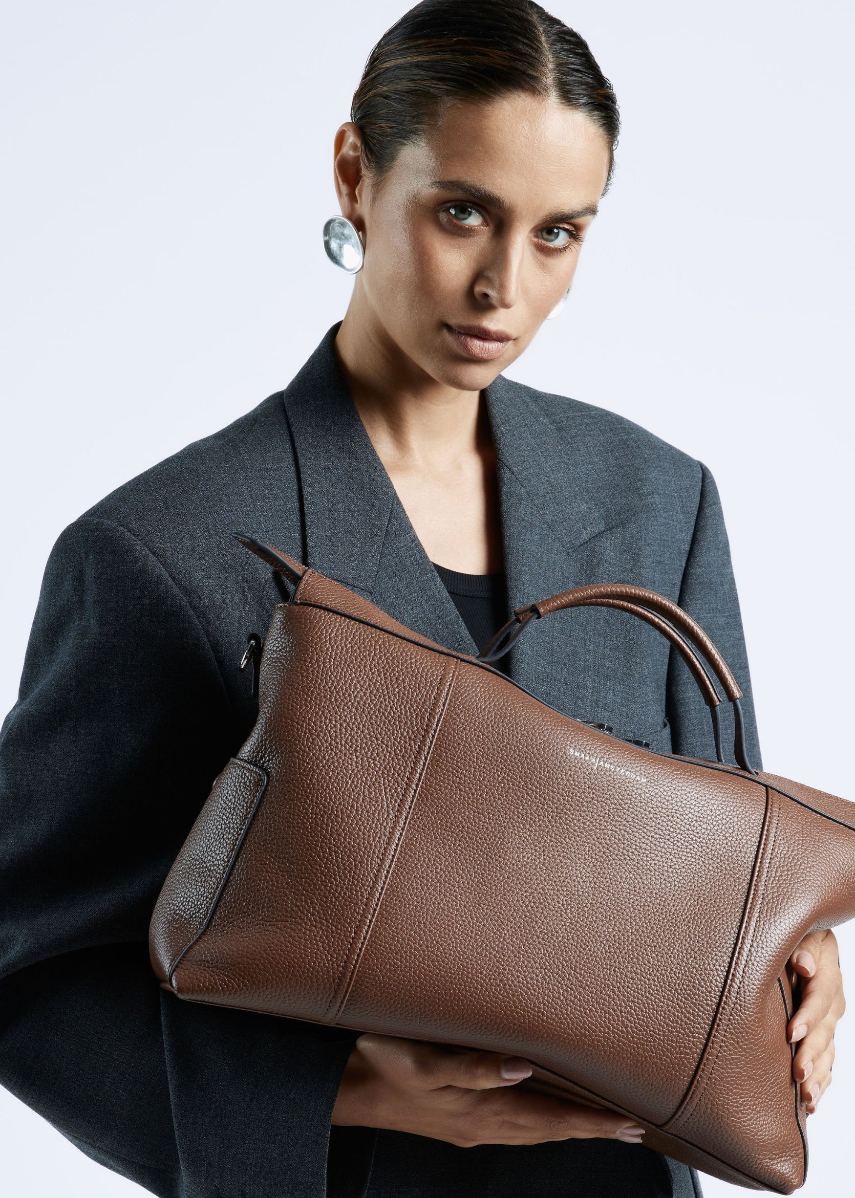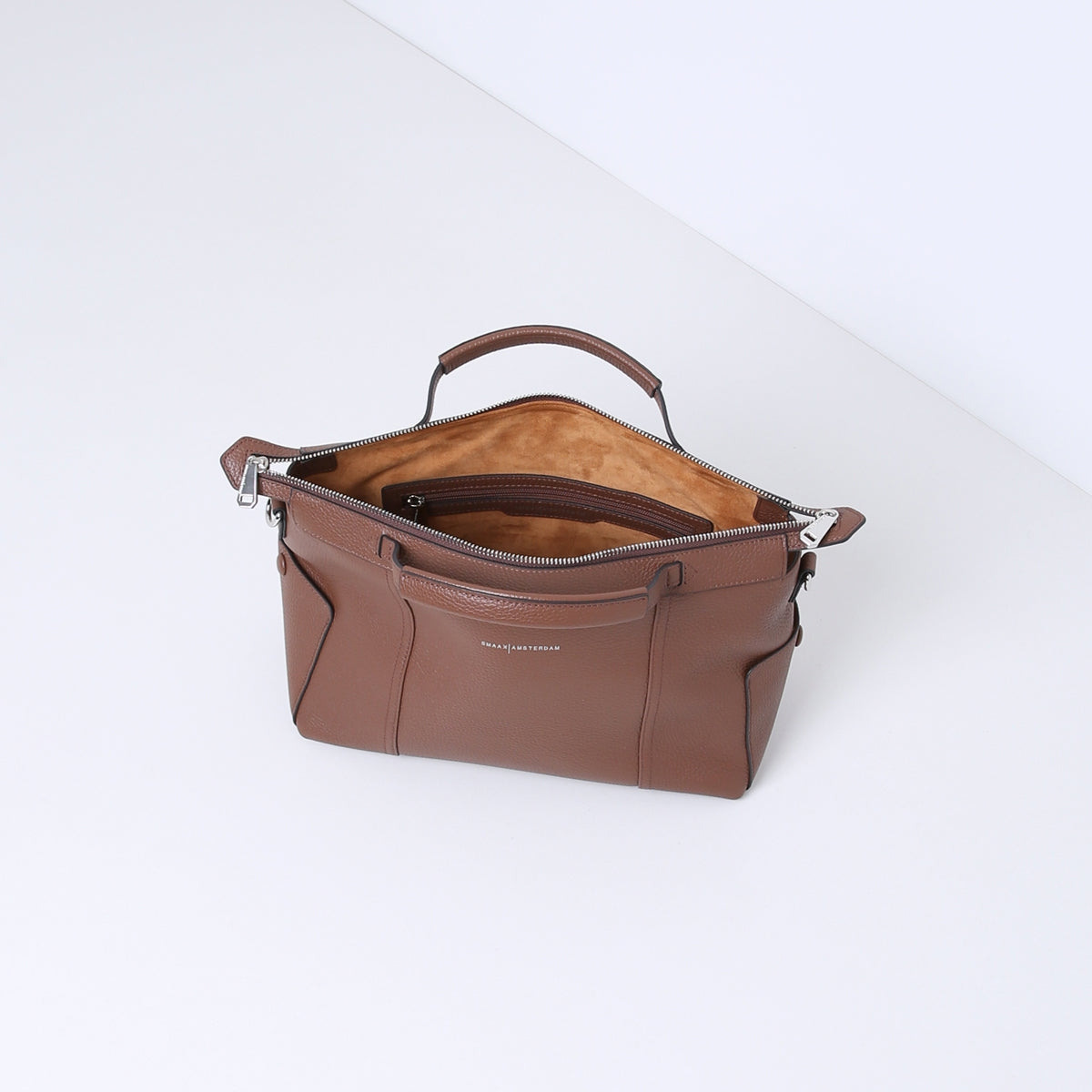 Mit ihrer geringeren Größe als die IKE ist die TONY eine zugängliche Handtasche, die Sie bei vielen Gelegenheiten verwenden können. Die Handtasche steht gut auf eigenen Füßen und die verschiedenen Fächer im Inneren ermöglichen es Ihnen, Ihre persönlichen Gegenstände leicht zu organisieren und ordentlich zu verteilen.