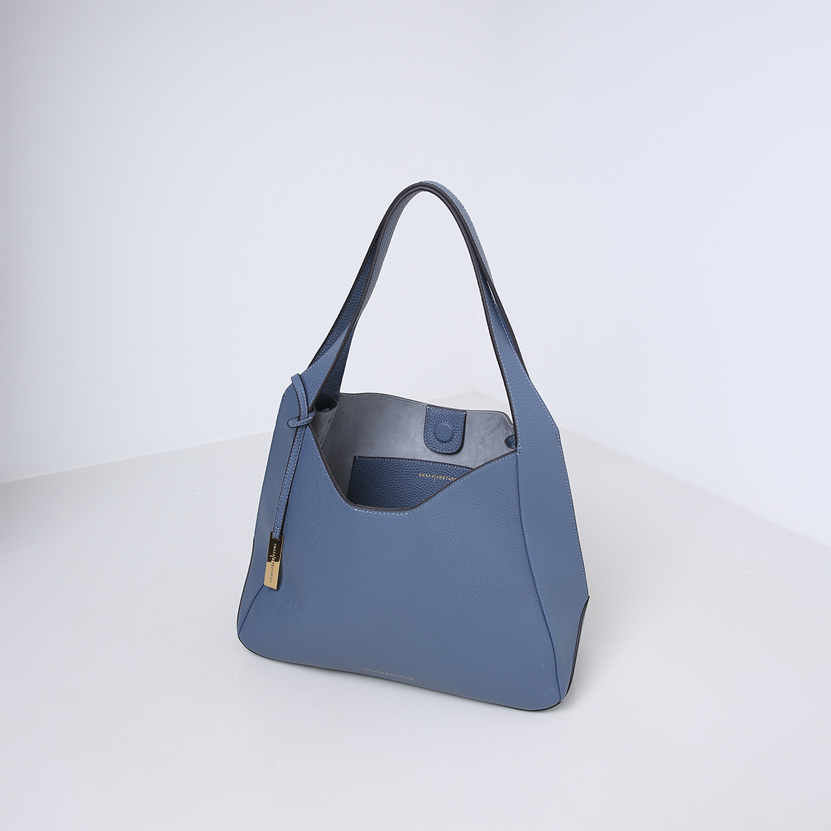 Die Handtasche hat zwei robuste Ledergriffe, die nahtlos in die Seiten der Tasche übergehen, wo sie in einem eleganten Spalt enden. Diese Schlitze sind nicht nur ein raffiniertes Detail, sondern sorgen auch für zusätzliche Flexibilität und Komfort beim Tragen. Dieses große Modell eignet sich perfekt für den täglichen Gebrauch und bietet ausreichend Platz für alle wichtigen Dinge, einschließlich eines 13-Zoll-Laptops ohne Hülle. Dank des abnehmbaren und verstellbaren Schulterriemens kann die Tasche sowohl in der Hand als auch am Körper getragen werden.