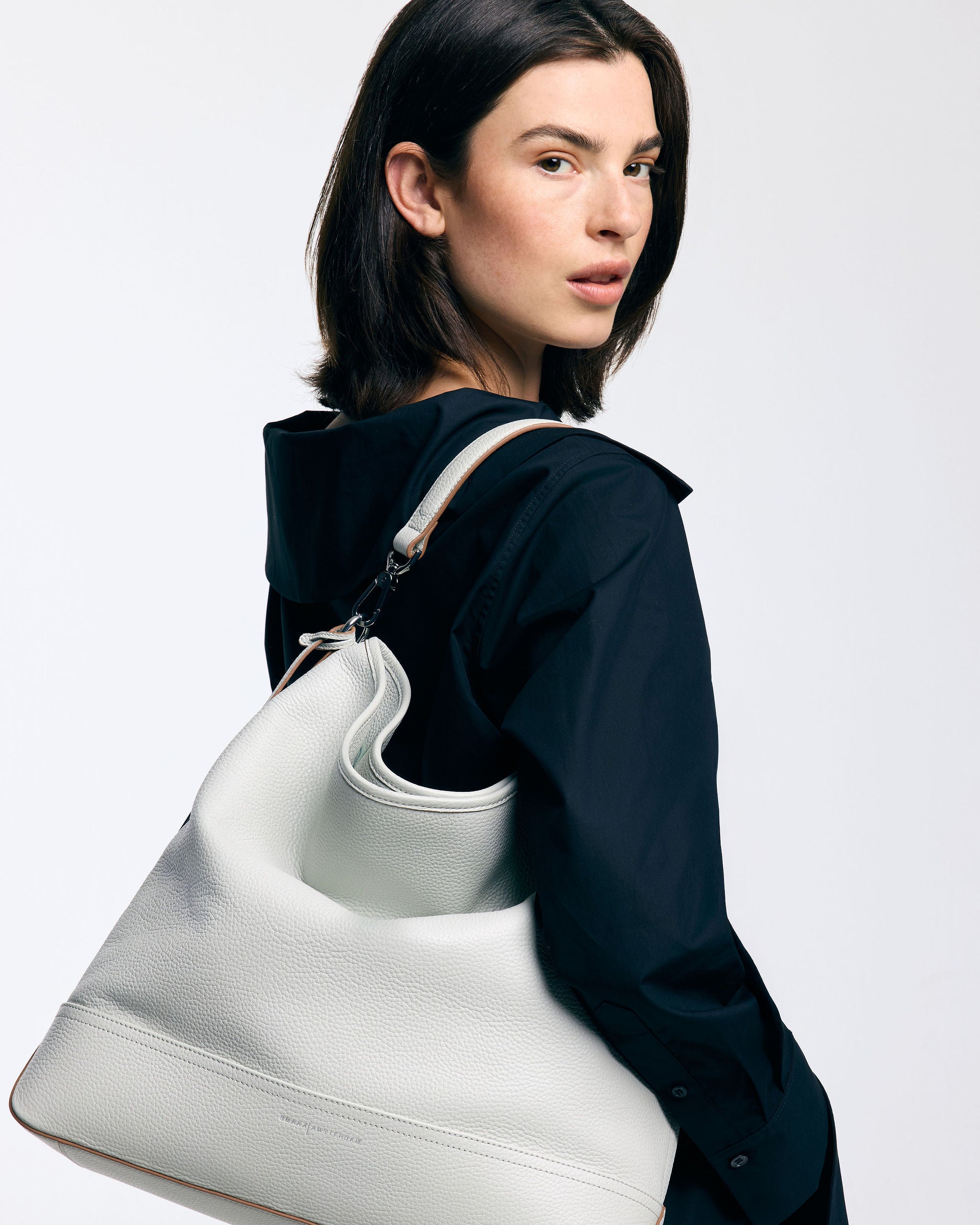 Das Design der Tasche ist so gestaltet, dass sie beim Tragen sanft am Körper entlang fällt und so einen eleganten und mühelosen Look bietet. Typisch für die Hobo Bag ist ihr geräumiges Fassungsvermögen für die wichtigsten Dinge des Alltags, ohne dabei unangenehm groß zu sein. Der Boden ist extra verstärkt, so dass die Tasche trotz ihrer weichen Form leicht aufrecht stehen kann.