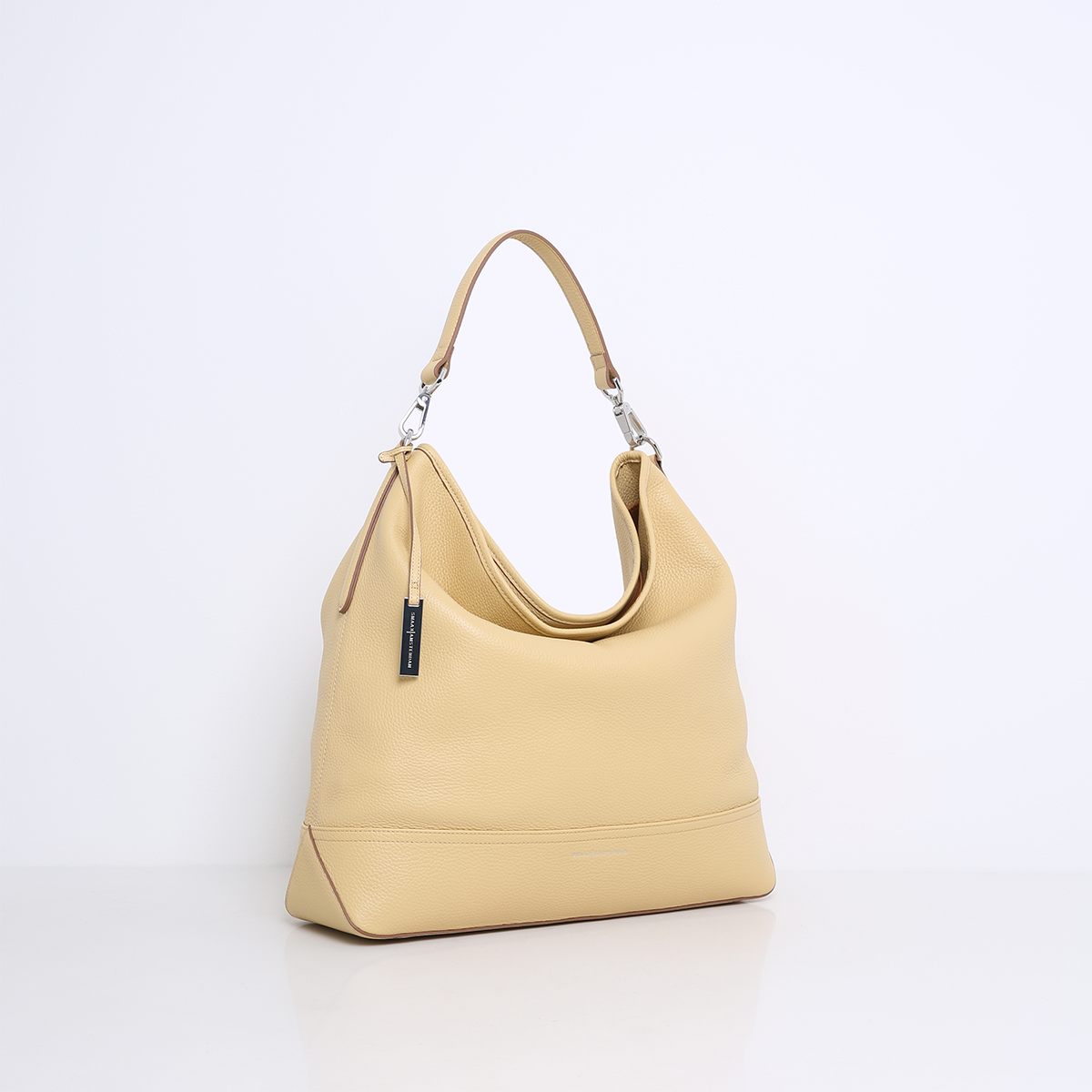 Das Design der Tasche ist so gestaltet, dass sie beim Tragen sanft am Körper entlang fällt und so einen eleganten und mühelosen Look bietet. Typisch für die Hobo Bag ist ihr geräumiges Fassungsvermögen für die wichtigsten Dinge des Alltags, ohne dabei unangenehm groß zu sein. Der Boden ist extra verstärkt, so dass die Tasche trotz ihrer weichen Form leicht aufrecht stehen kann.