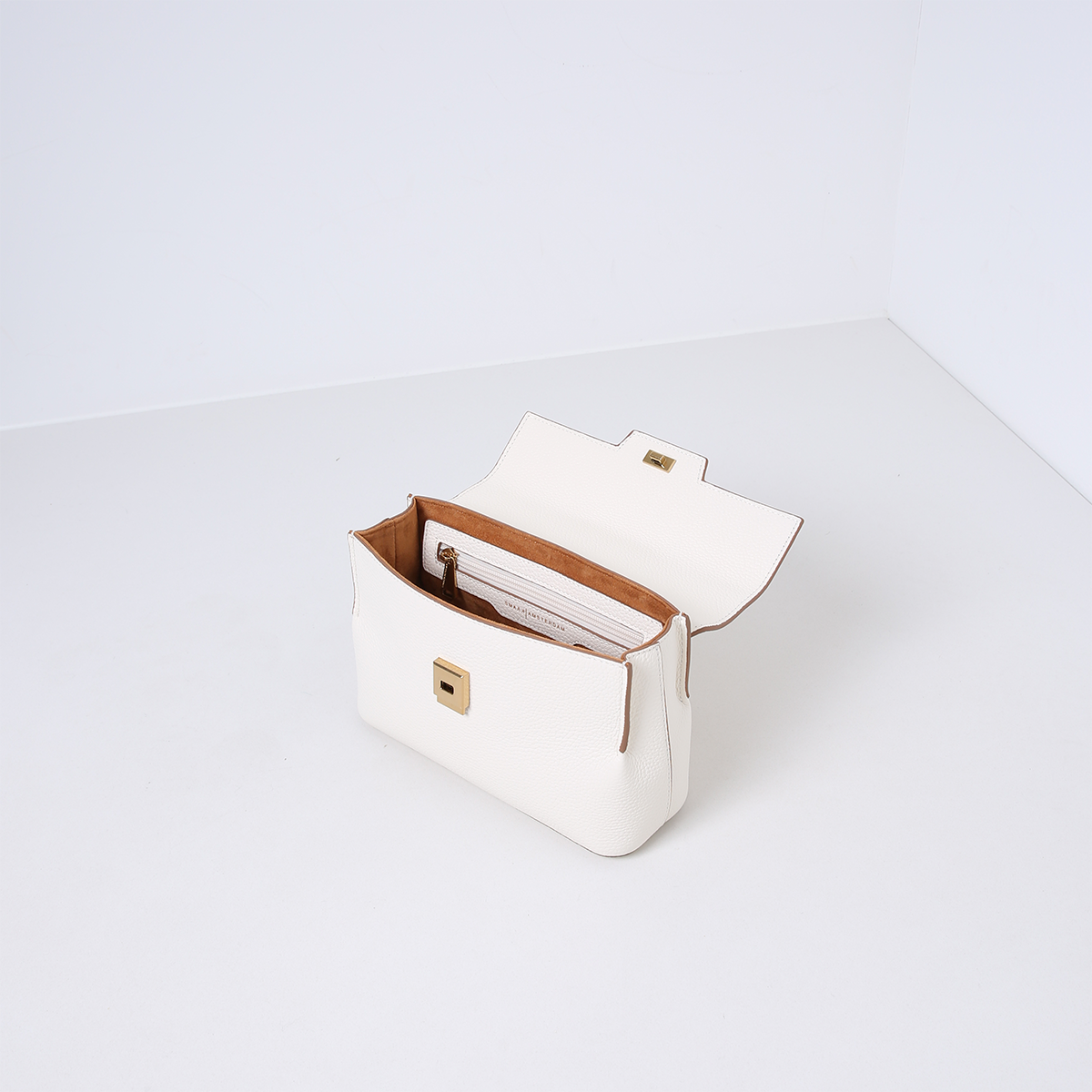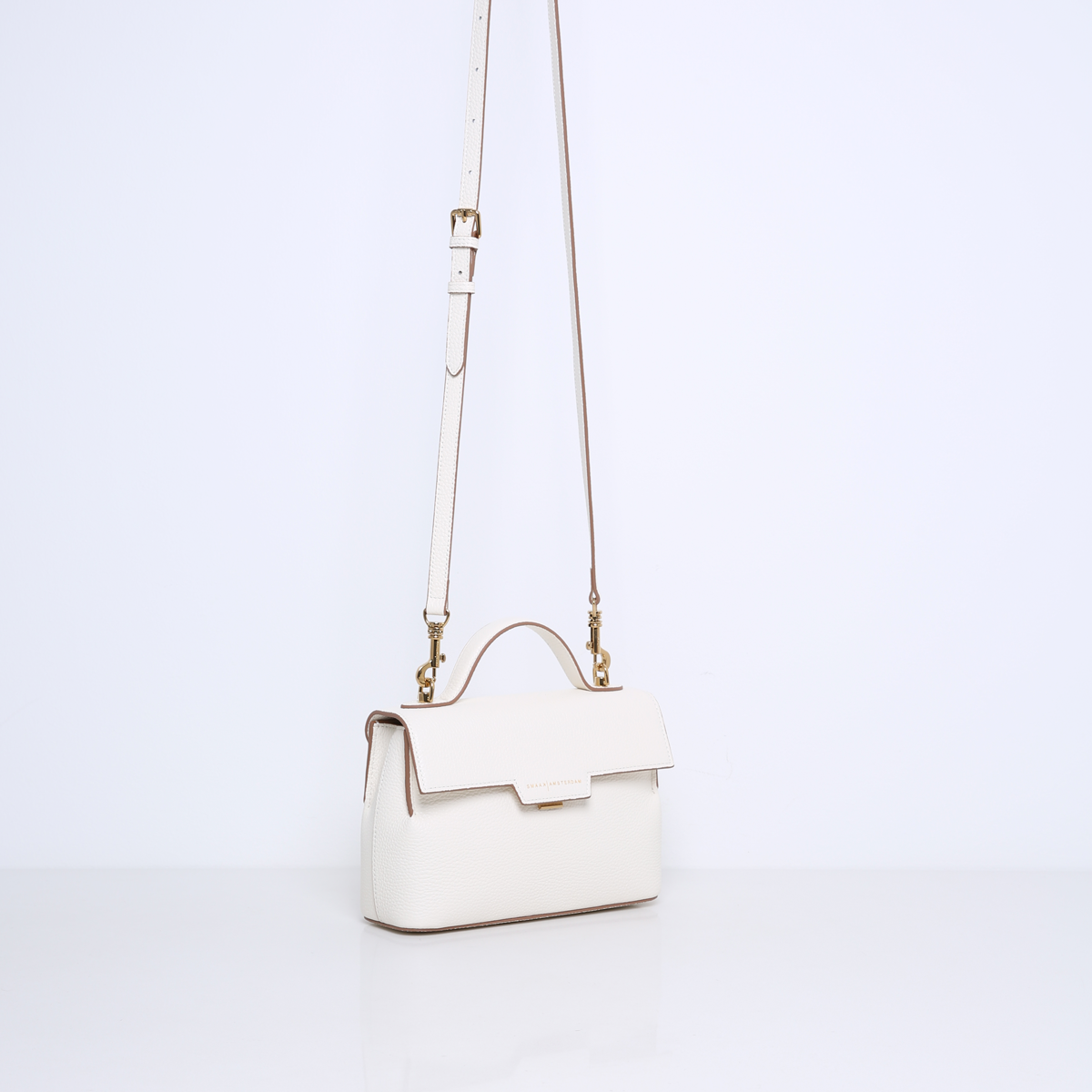 Die FLORA hat einen kurzen Henkel und einen abnehmbaren Lederriemen, der an der Oberseite befestigt wird. Die Handtasche wird vorne mit einem Schnappverschluss geöffnet. Es gibt genügend Platz für alle wichtigen Dinge wie Telefon, Geldbörse, (Sonnen-)Brille und Schlüssel. Seine rechteckige und offene Form ermöglicht Ihnen einen einfachen und bequemen Zugriff auf Ihre Sachen.