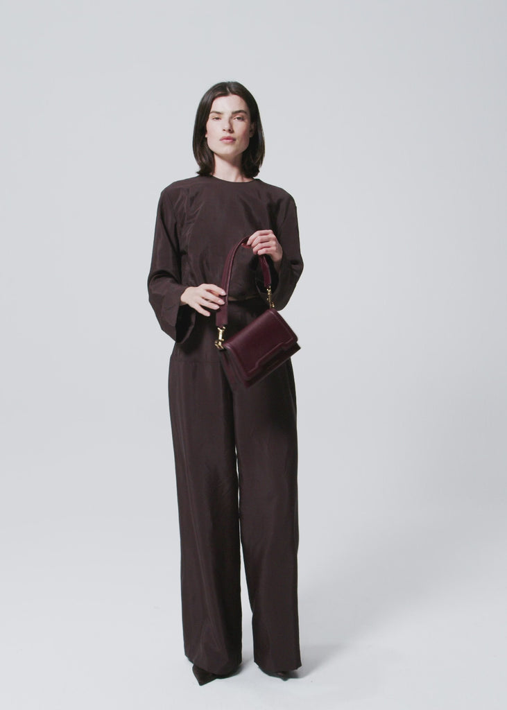 Die BITTI wird an der Vorderseite mit einem Schnappverschluss geöffnet. Im Inneren hat die Tasche zwei Fächer und ein zusätzliches offenes Fach auf der Rückseite und ist mit Suedine (Viskose) gefüttert. Die Tasche ist aus weichem und geschmeidigem Rindsleder gefertigt. Mit dem abnehmbaren Lederschulterriemen können Sie die Umhängetasche auch als Crossbody-Bag tragen.
