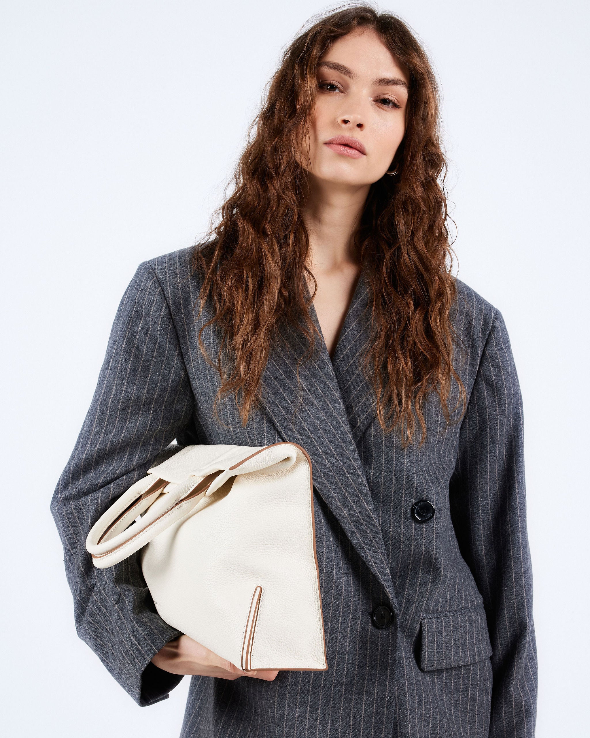 Durch ihr zeitloses und vielseitiges Design eignet sich die mittelgroße Lederhandtasche für verschiedene Anlässe, von der Arbeit über Freizeitaktivitäten bis hin zu Abendveranstaltungen. Die Tasche kann doppelt gefaltet werden, so dass man sie lässig als große Clutch tragen kann; ein unverzichtbares Accessoire in der Garderobe jeder stilbewussten Person.