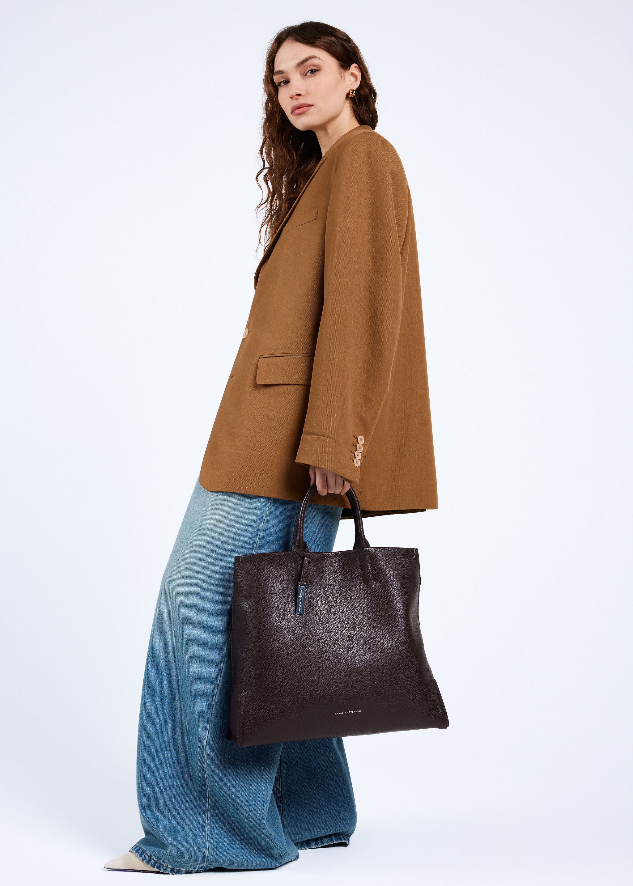 Durch ihr zeitloses und vielseitiges Design eignet sich die mittelgroße Lederhandtasche für verschiedene Anlässe, von der Arbeit über Freizeitaktivitäten bis hin zu Abendveranstaltungen. Die Tasche kann doppelt gefaltet werden, so dass man sie lässig als große Clutch tragen kann; ein unverzichtbares Accessoire in der Garderobe jeder stilbewussten Person.
