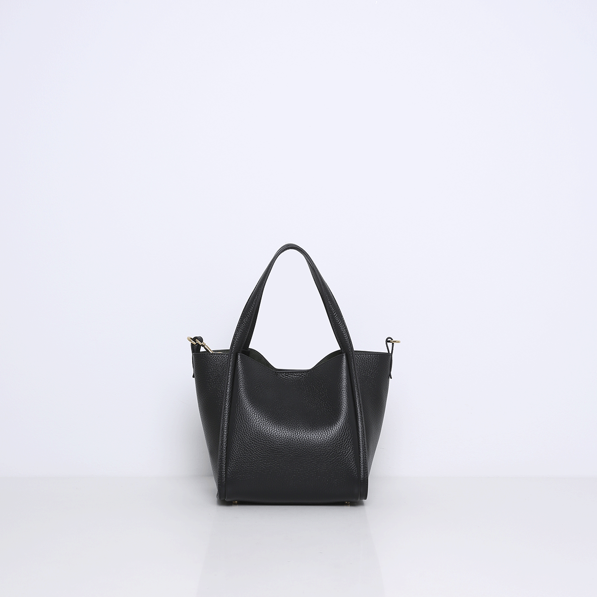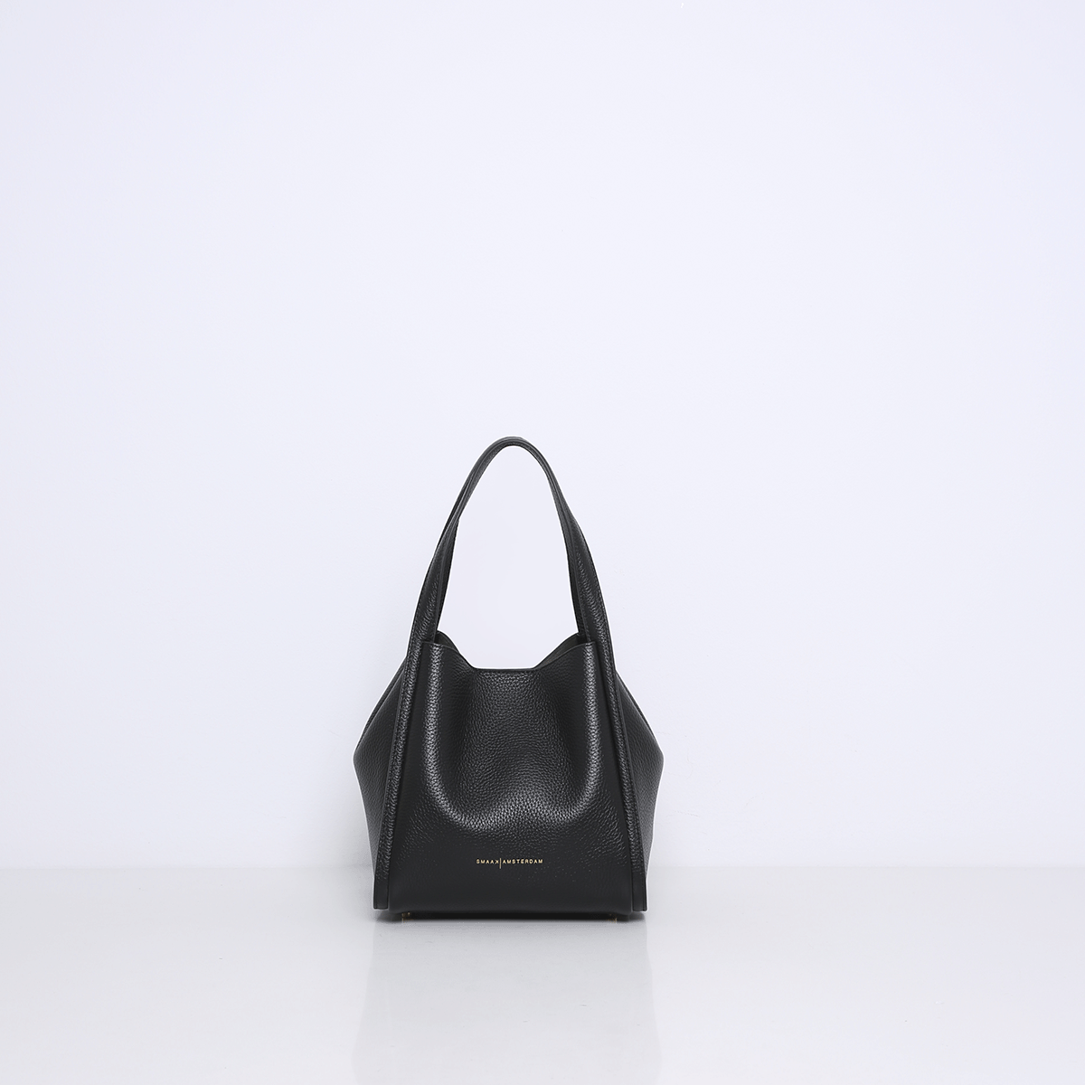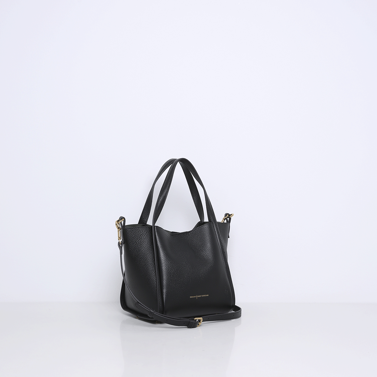 Was die JANE auszeichnet, ist ihr ausgeklügeltes Design und ihre Vielseitigkeit, so dass sie überall eingesetzt werden kann. Die Ledergriffe verlaufen rund um das Design der Tasche. An der Oberseite befindet sich ein zusätzlicher Haken, mit dem man sie horizontal verbinden kann, um das Modell kompakter zu machen und seine Form zu verändern. Es erinnert daher an den Umriss einer Tulpe, einer Blume, die oft mit Schönheit und Anmut assoziiert wird.