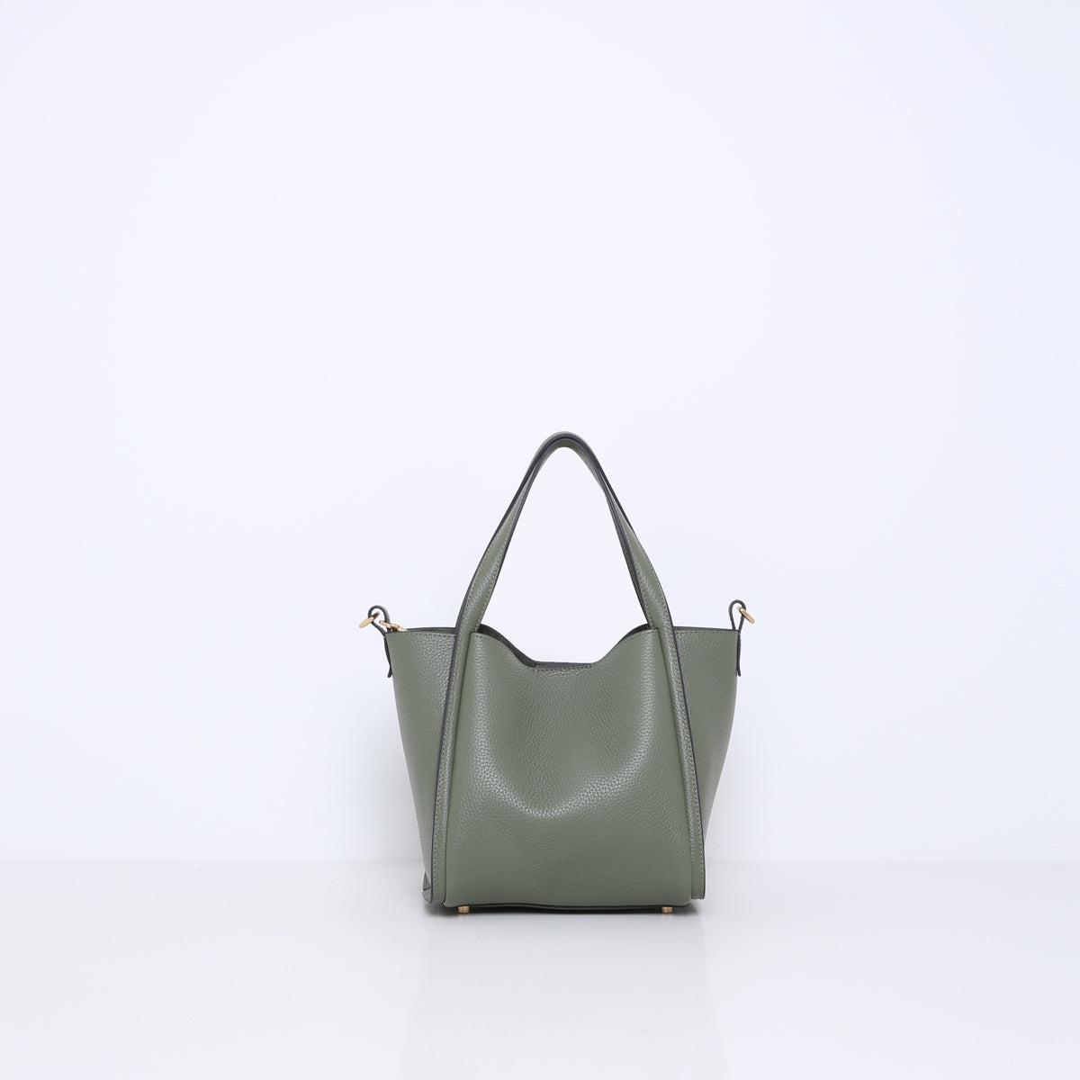 Was die JANE auszeichnet, ist ihr ausgeklügeltes Design und ihre Vielseitigkeit, so dass sie überall eingesetzt werden kann. Die Ledergriffe verlaufen rund um das Design der Tasche. An der Oberseite befindet sich ein zusätzlicher Haken, mit dem man sie horizontal verbinden kann, um das Modell kompakter zu machen und seine Form zu verändern. Es erinnert daher an den Umriss einer Tulpe, einer Blume, die oft mit Schönheit und Anmut assoziiert wird.