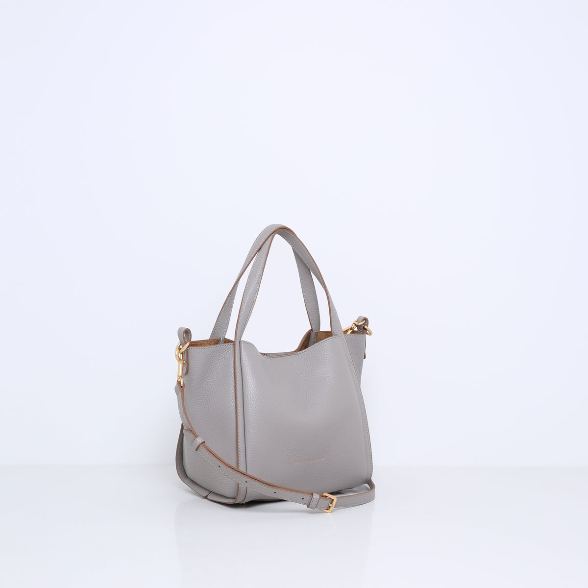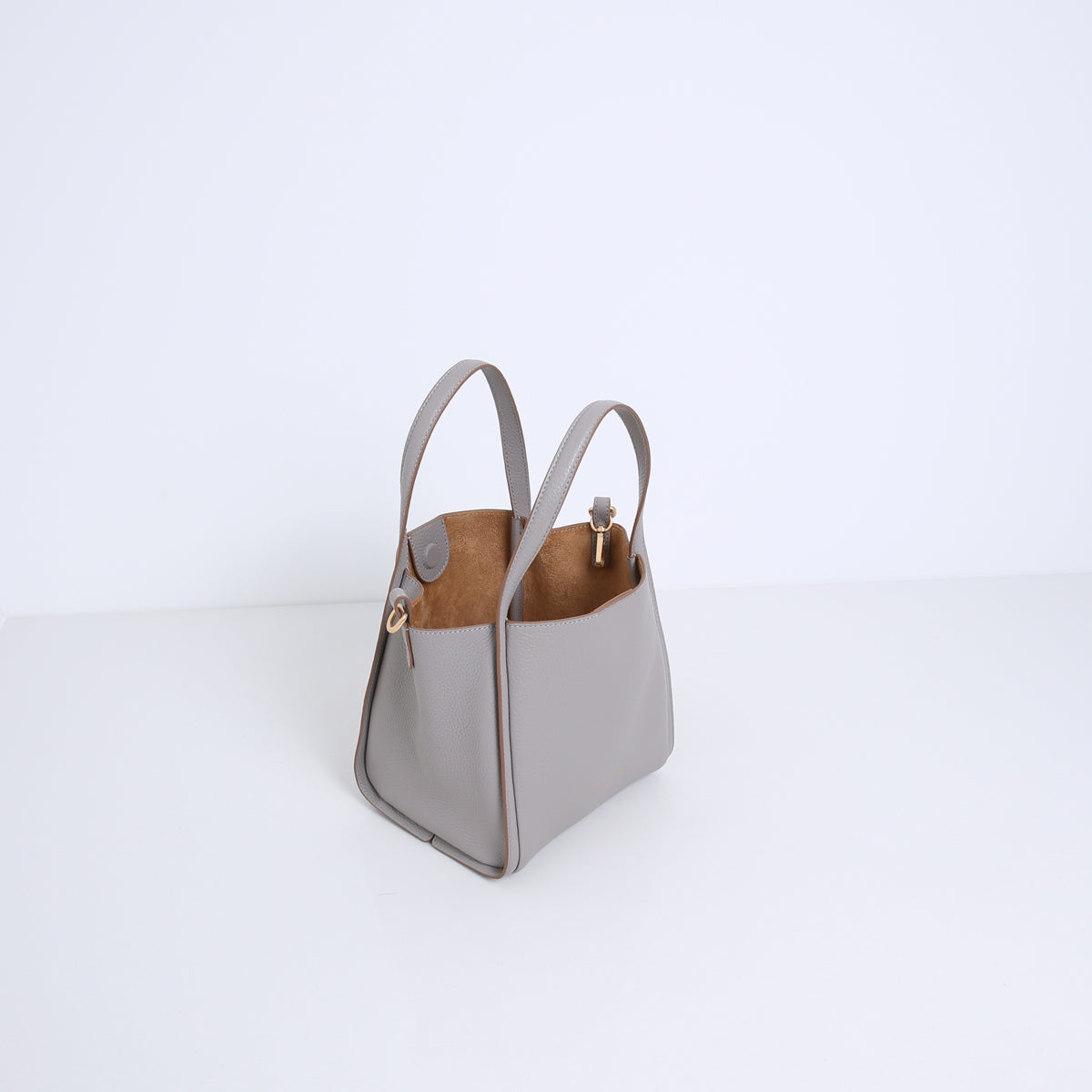 Was die JANE auszeichnet, ist ihr ausgeklügeltes Design und ihre Vielseitigkeit, so dass sie überall eingesetzt werden kann. Die Ledergriffe verlaufen rund um das Design der Tasche. An der Oberseite befindet sich ein zusätzlicher Haken, mit dem man sie horizontal verbinden kann, um das Modell kompakter zu machen und seine Form zu verändern. Es erinnert daher an den Umriss einer Tulpe, einer Blume, die oft mit Schönheit und Anmut assoziiert wird.