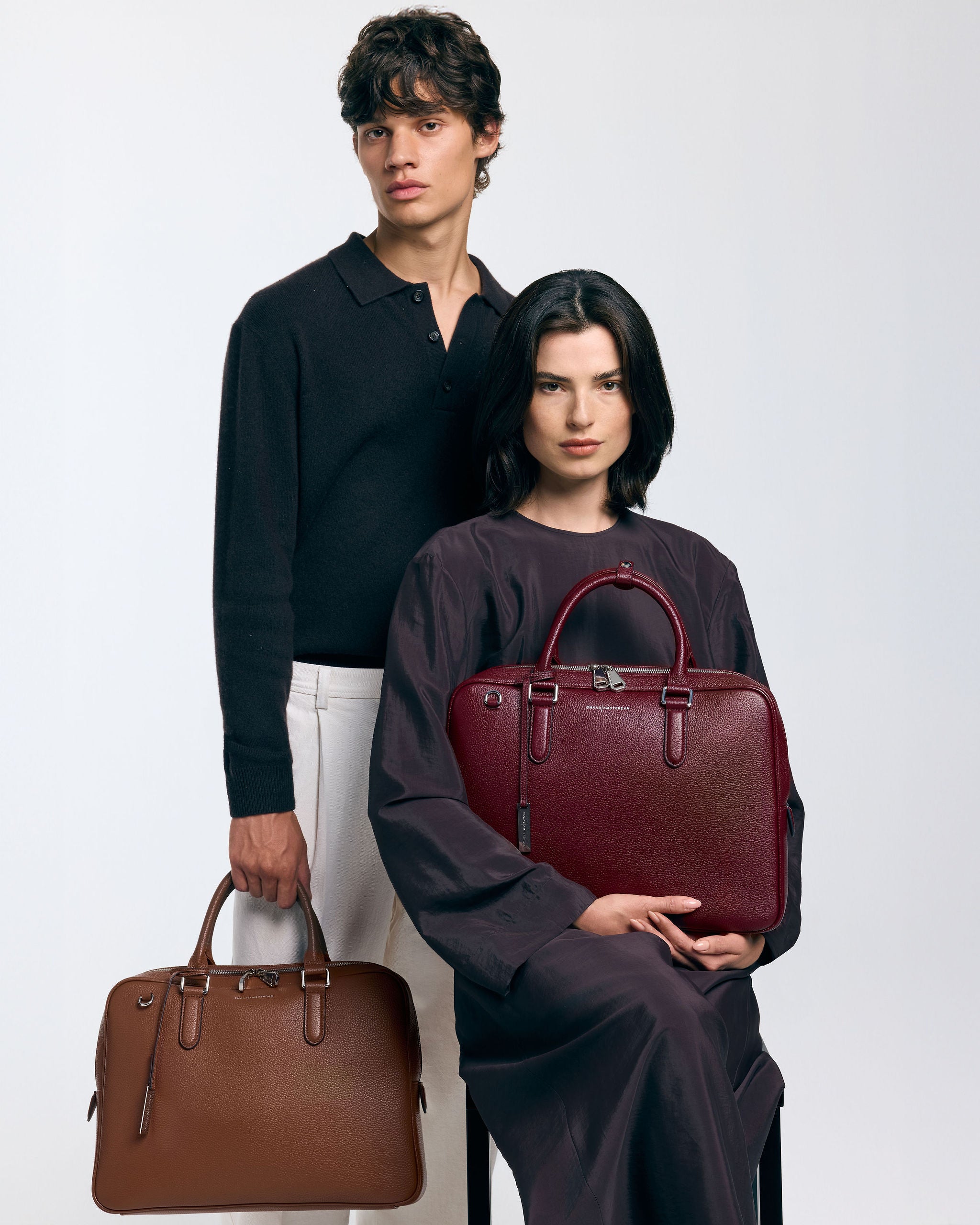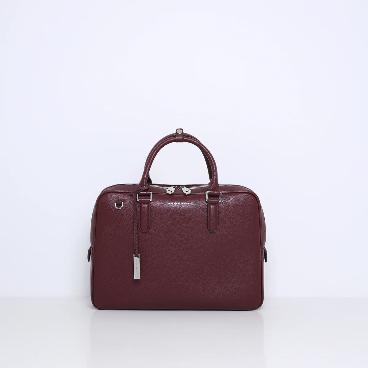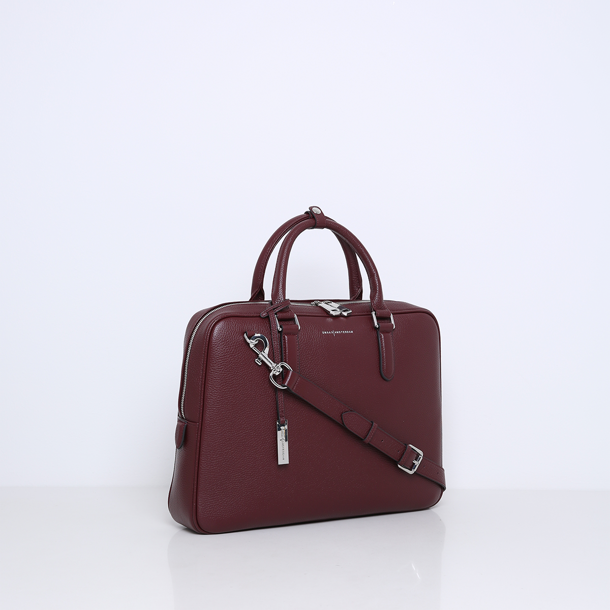 Die Tasche verfügt über mehrere Innenfächer und ist mit Veloursleder (Viskose) gefüttert. Es gibt ein separates Laptop-Fach, das für einen 13-Zoll-Laptop geeignet ist. Der 15-Zoll-Laptop passt in das mittlere Fach der Tasche. Neben dem Laptop bietet die Tasche auch Platz für Dokumente oder andere Dinge wie eine Flasche Wasser und andere wichtige Dinge. Die Tasche ist mit silberner Hardware ausgestattet, die ihr einen robusten Look verleiht.