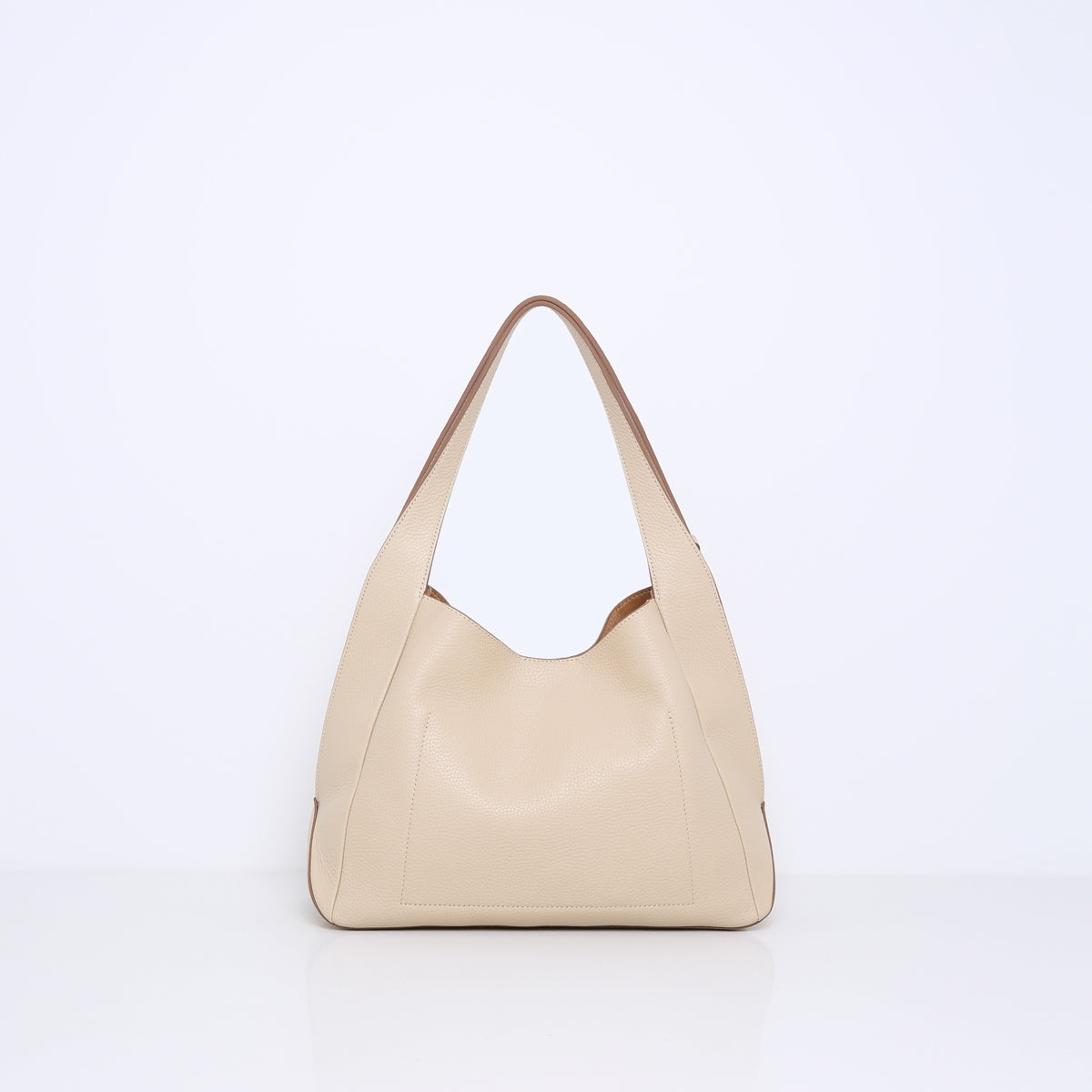 Die Handtasche hat zwei robuste Ledergriffe, die nahtlos in die Seiten der Tasche übergehen, wo sie in einem eleganten Spalt enden. Diese Schlitze sind nicht nur ein raffiniertes Detail, sondern sorgen auch für zusätzliche Flexibilität und Komfort beim Tragen. Dieses große Modell eignet sich perfekt für den täglichen Gebrauch und bietet ausreichend Platz für alle wichtigen Dinge, einschließlich eines 13-Zoll-Laptops ohne Hülle. Dank des abnehmbaren und verstellbaren Schulterriemens kann die Tasche sowohl in der Hand als auch am Körper getragen werden.
