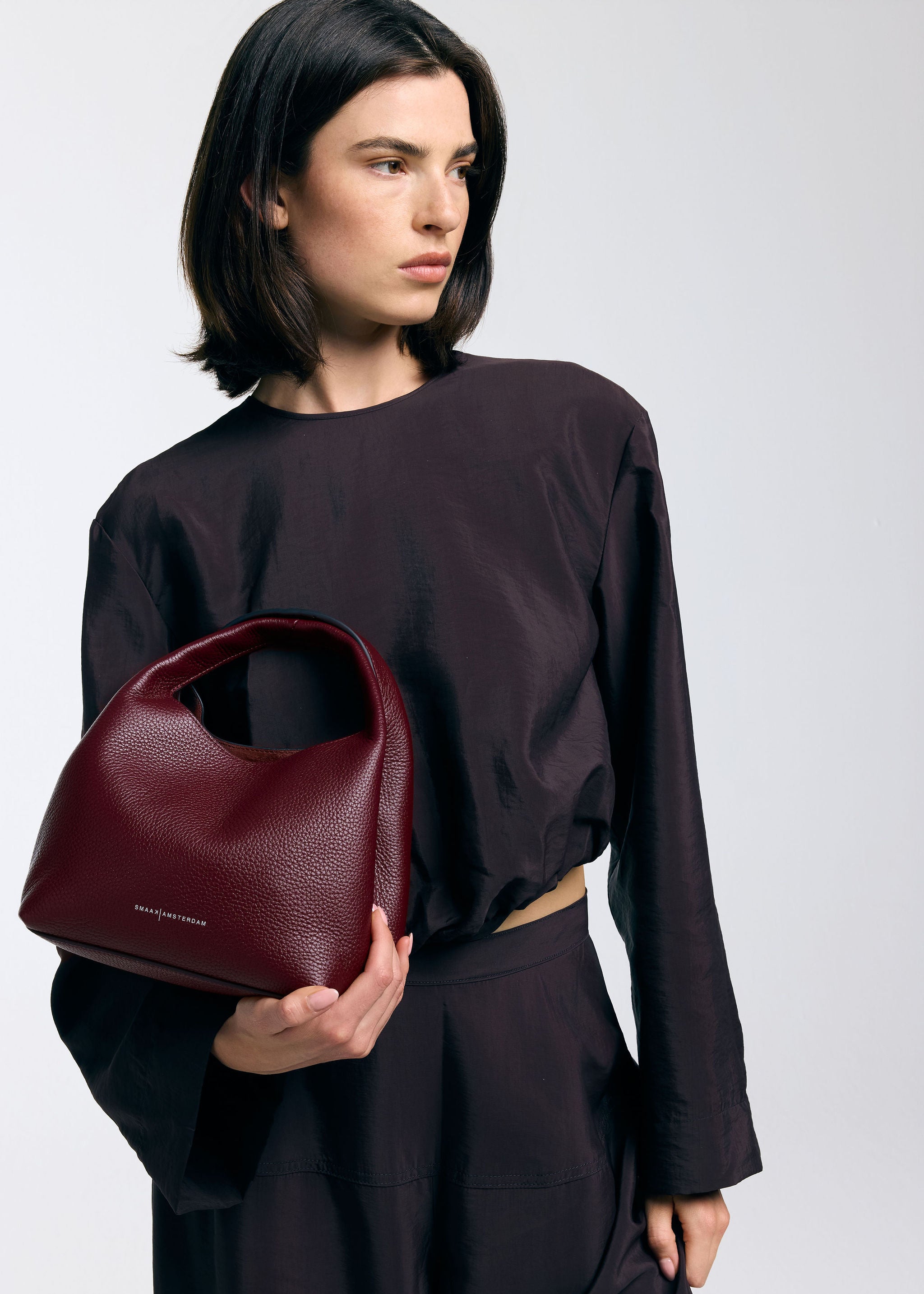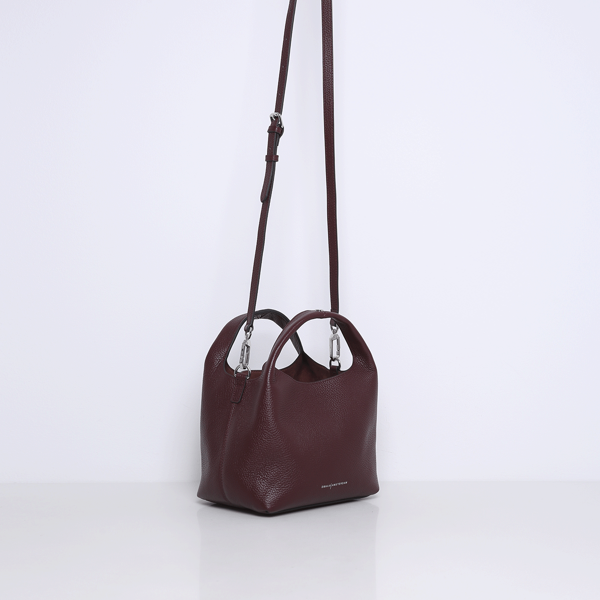 Die silberfarbenen Details bilden einen raffinierten Kontrast zur Farbe des Leders und des Innenfutters, während die kompakte Größe Ihre wichtigsten Utensilien stilvoll zusammenhält. Tragen Sie die Tasche am Henkel für einen stilvollen Look oder crossbody für einen mühelos coolen Look.
