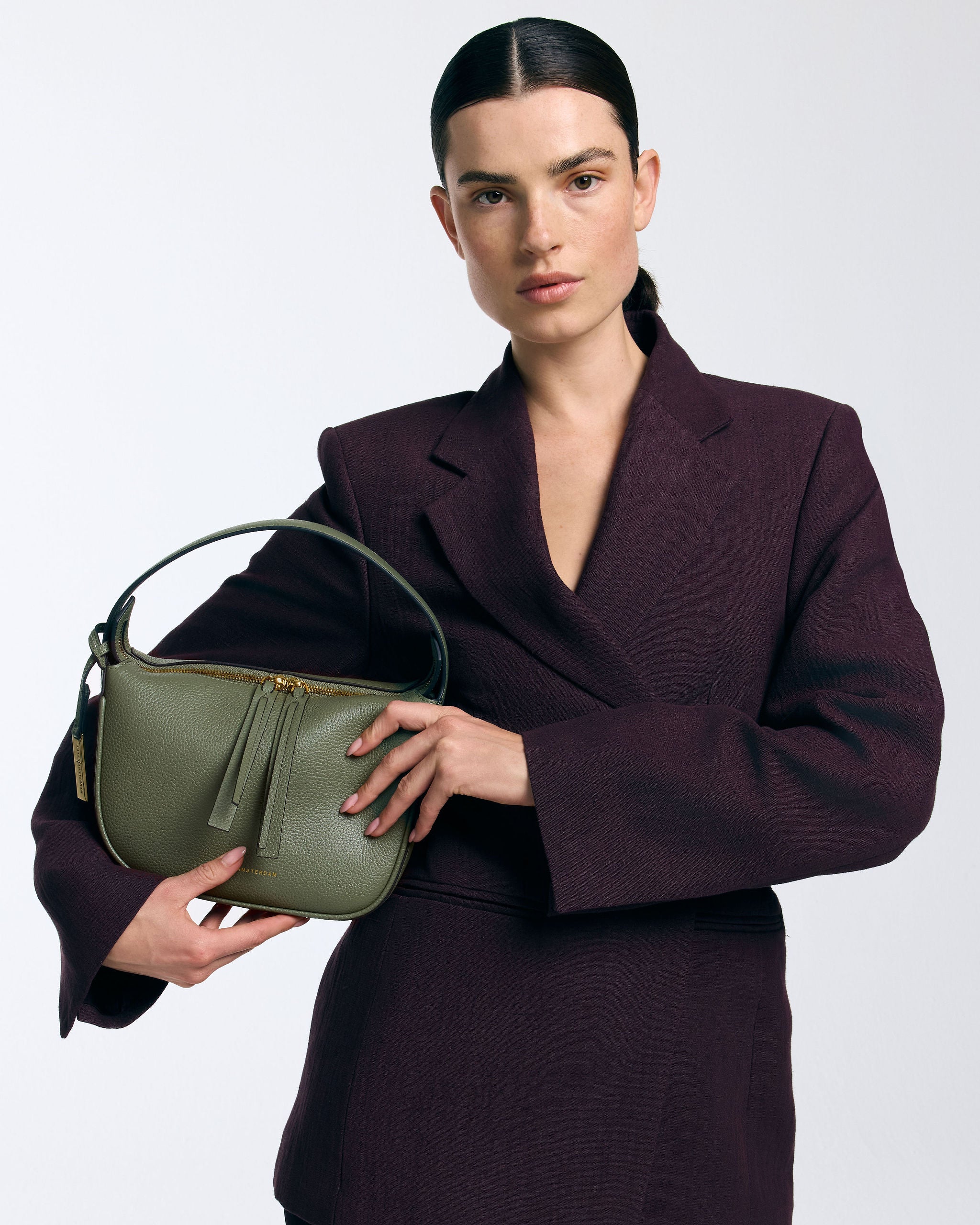 Die DANIEL ist die kleinere Schwester unserer eleganten MONROE-Tasche, eine kompakte Hobo-Tasche, die Stil und Komfort perfekt vereint. Die Tasche ist mit einem luxuriösen, goldfarbenen Reißverschluss versehen und hat einen festen, kurzen Riemen, so dass Sie sie bequem über der Schulter tragen können. Außerdem ist die Tasche mit einem extralangen Riemen ausgestattet, so dass Sie sie auch als Crossbody-Tasche tragen können.