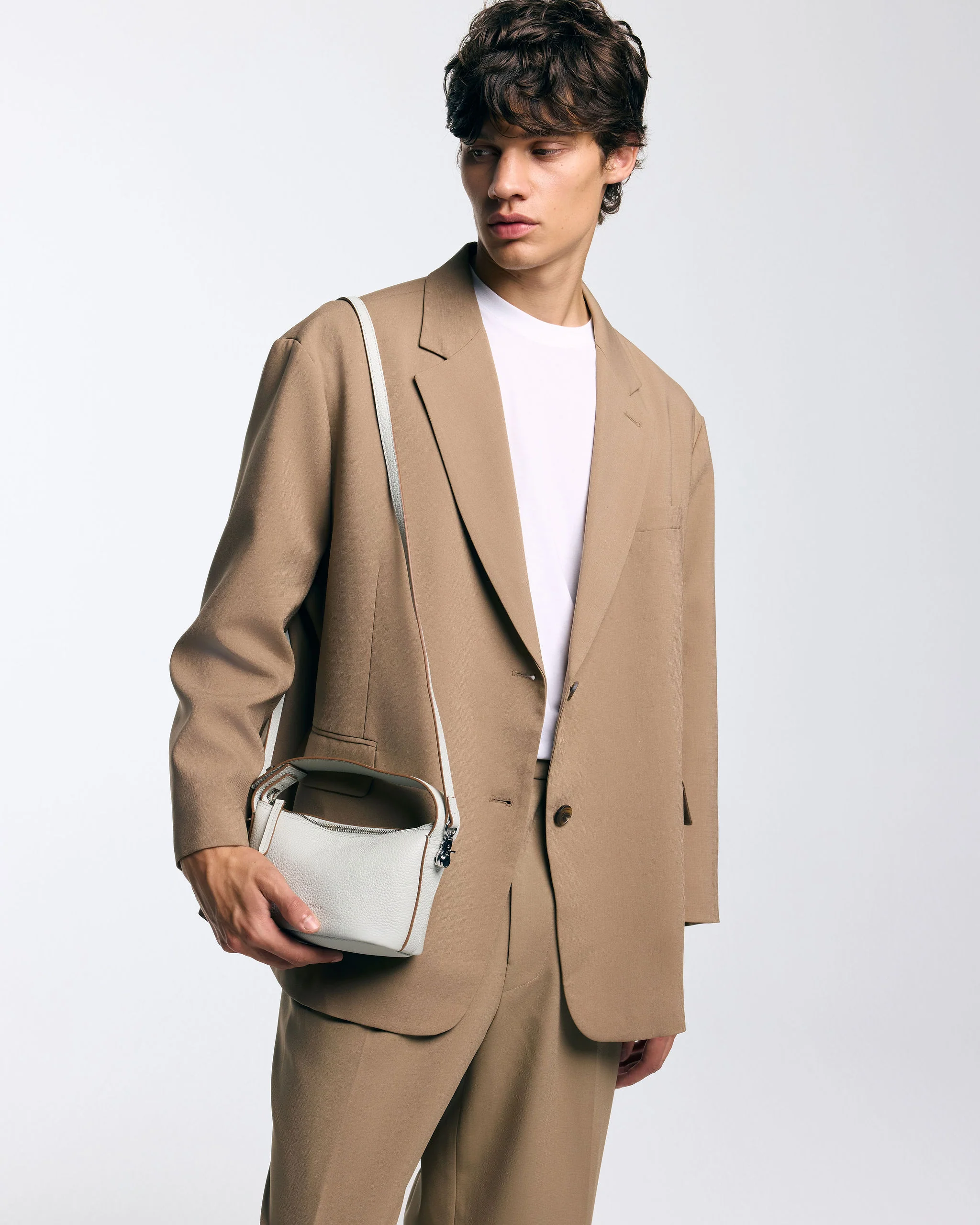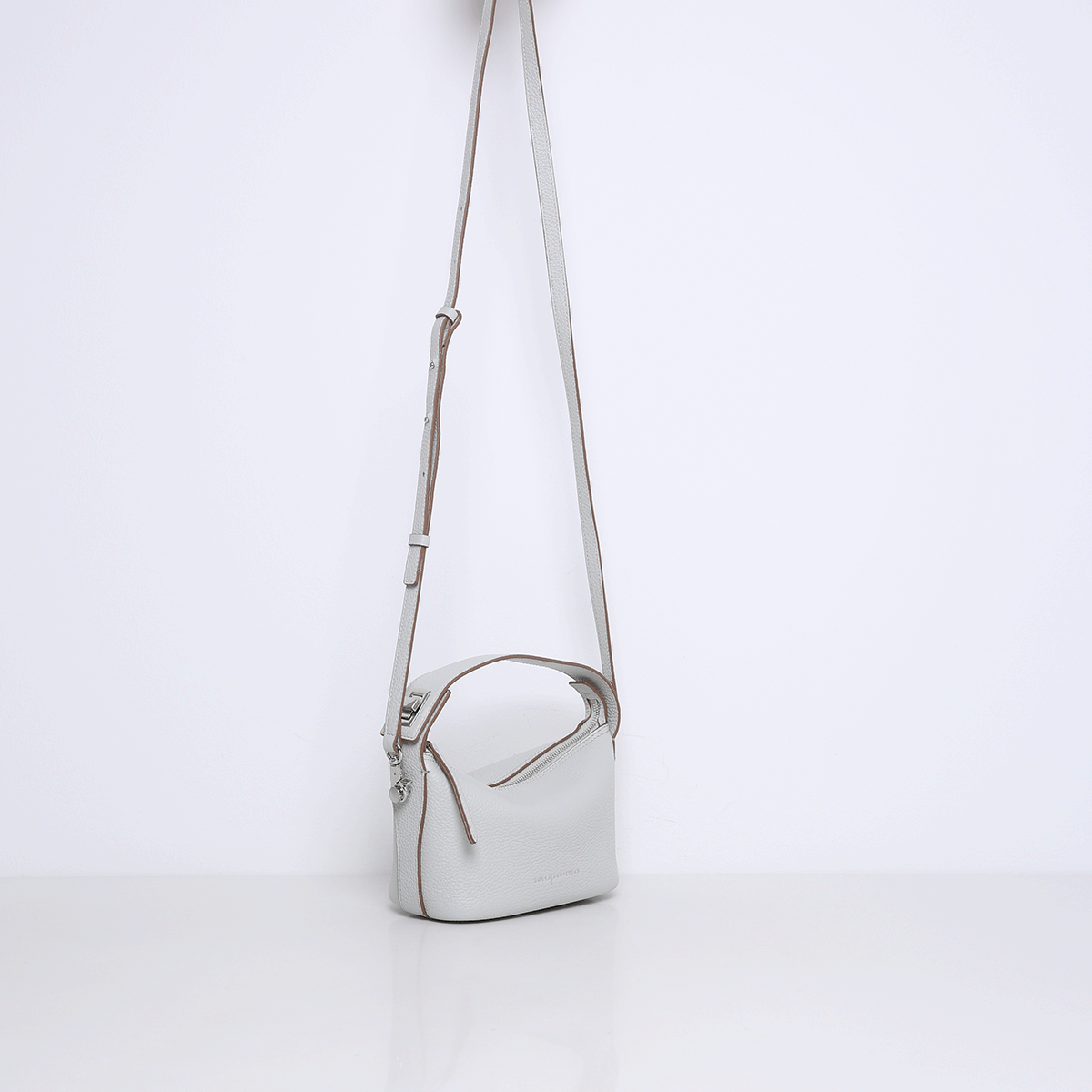 Die Tasche ist aus weichem und geschmeidigem Rindsleder gefertigt. Sie hat kein zusätzliches Innenfach und ist mit Veloursleder (Viskose) gefüttert. Mit dem abnehmbaren, verstellbaren Schulterriemen können Sie die Handtasche auch als Crossbody-Bag tragen.