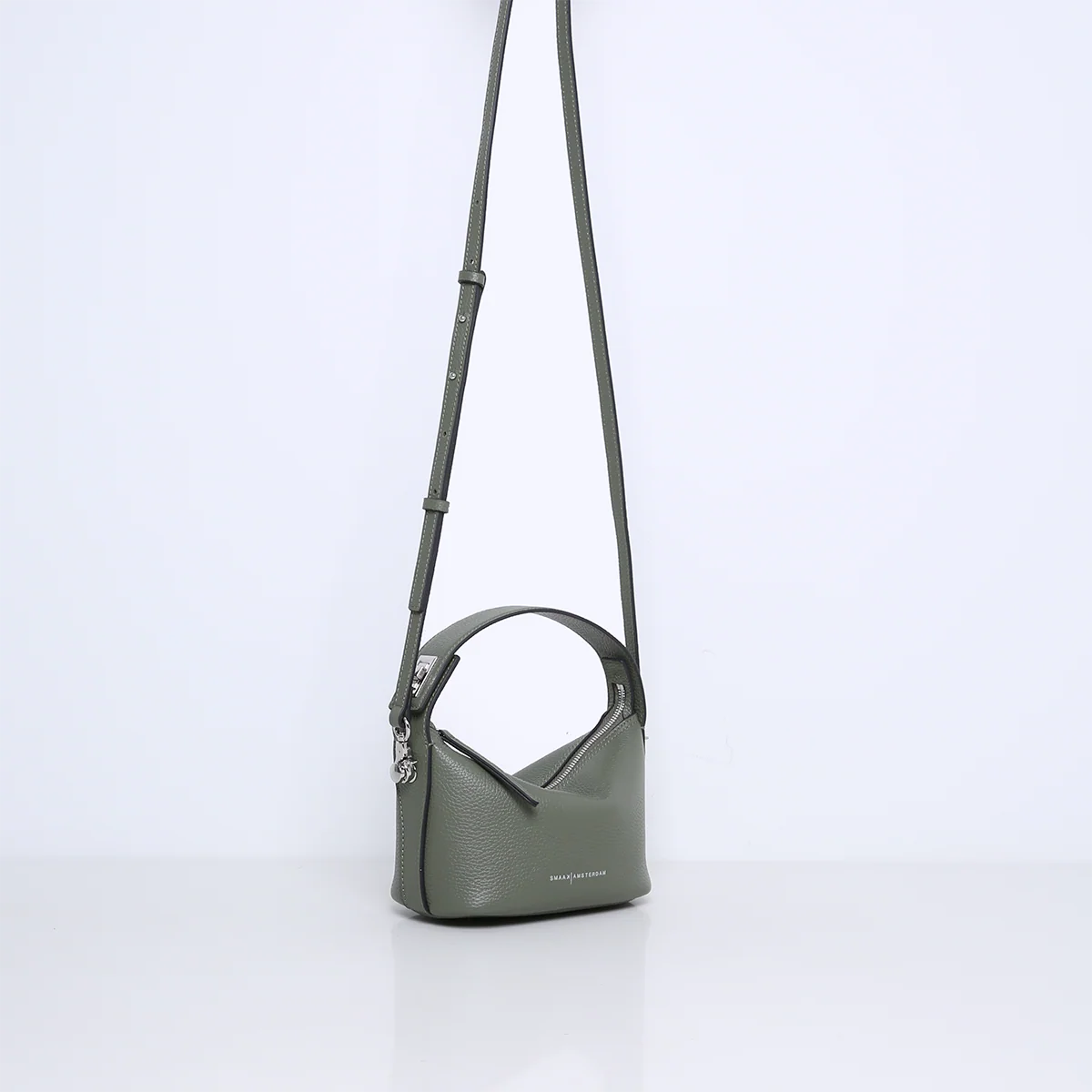 Die Tasche ist aus weichem und geschmeidigem Rindsleder gefertigt. Sie hat kein zusätzliches Innenfach und ist mit Veloursleder (Viskose) gefüttert. Mit dem abnehmbaren, verstellbaren Schulterriemen können Sie die Handtasche auch als Crossbody-Bag tragen.