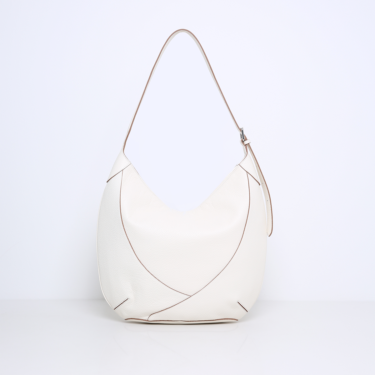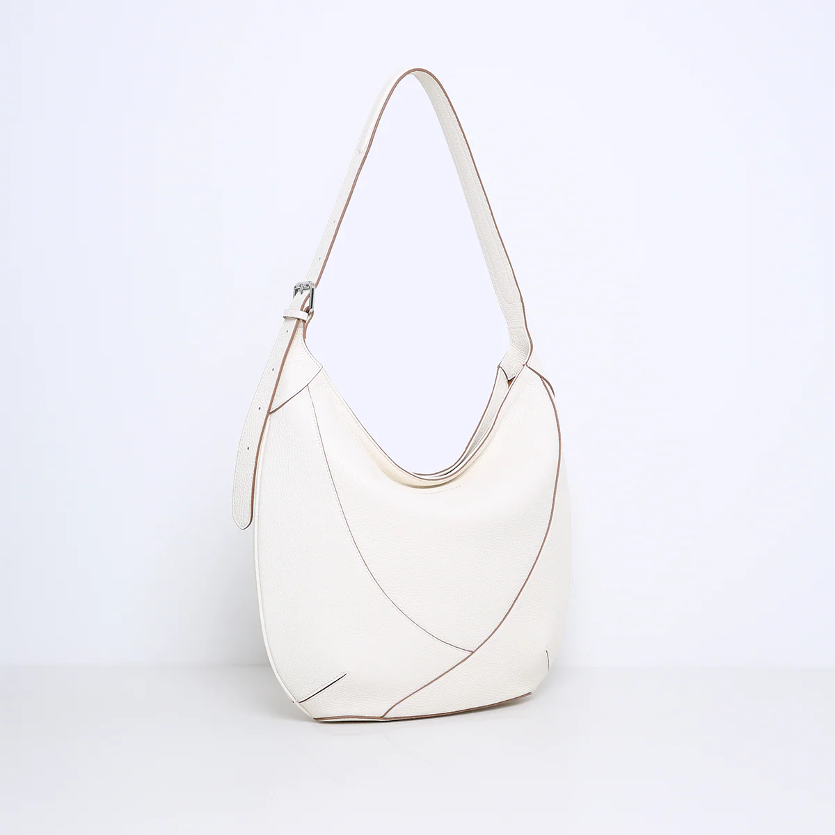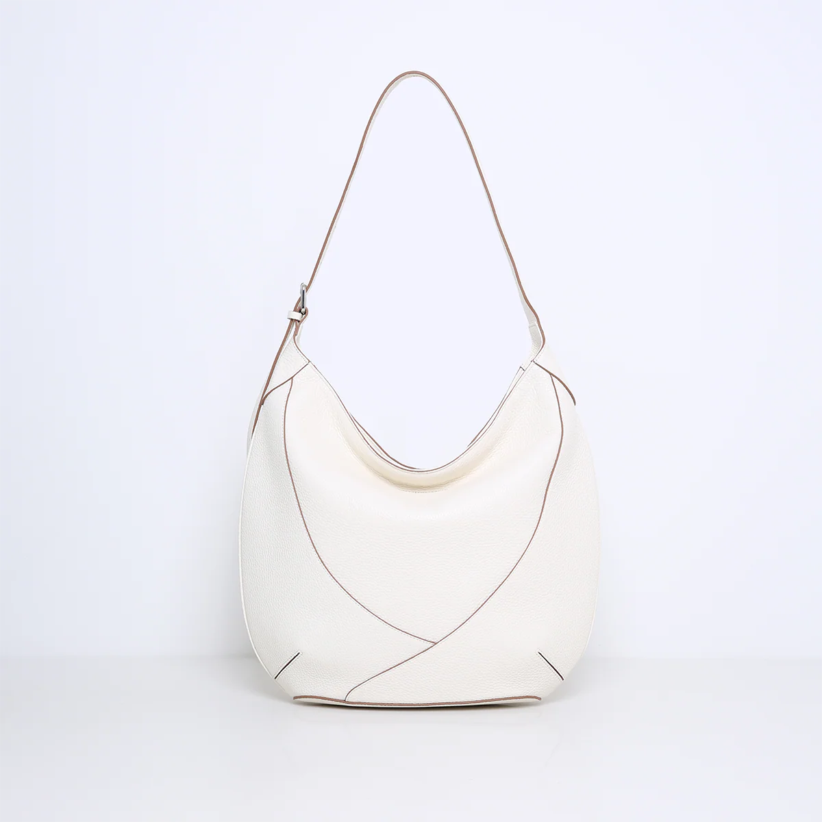 Der Ledershopper DREW verbindet mühelos Stil mit Funktionalität. Seine mittlere Größe bietet genügend Platz für Ihre täglichen Essentials, während sein einzigartiges Design mit einer halbrunden Form und geometrischen Linien sowohl der Vorder- als auch der Rückseite einen modernen, grafischen Look verleiht.