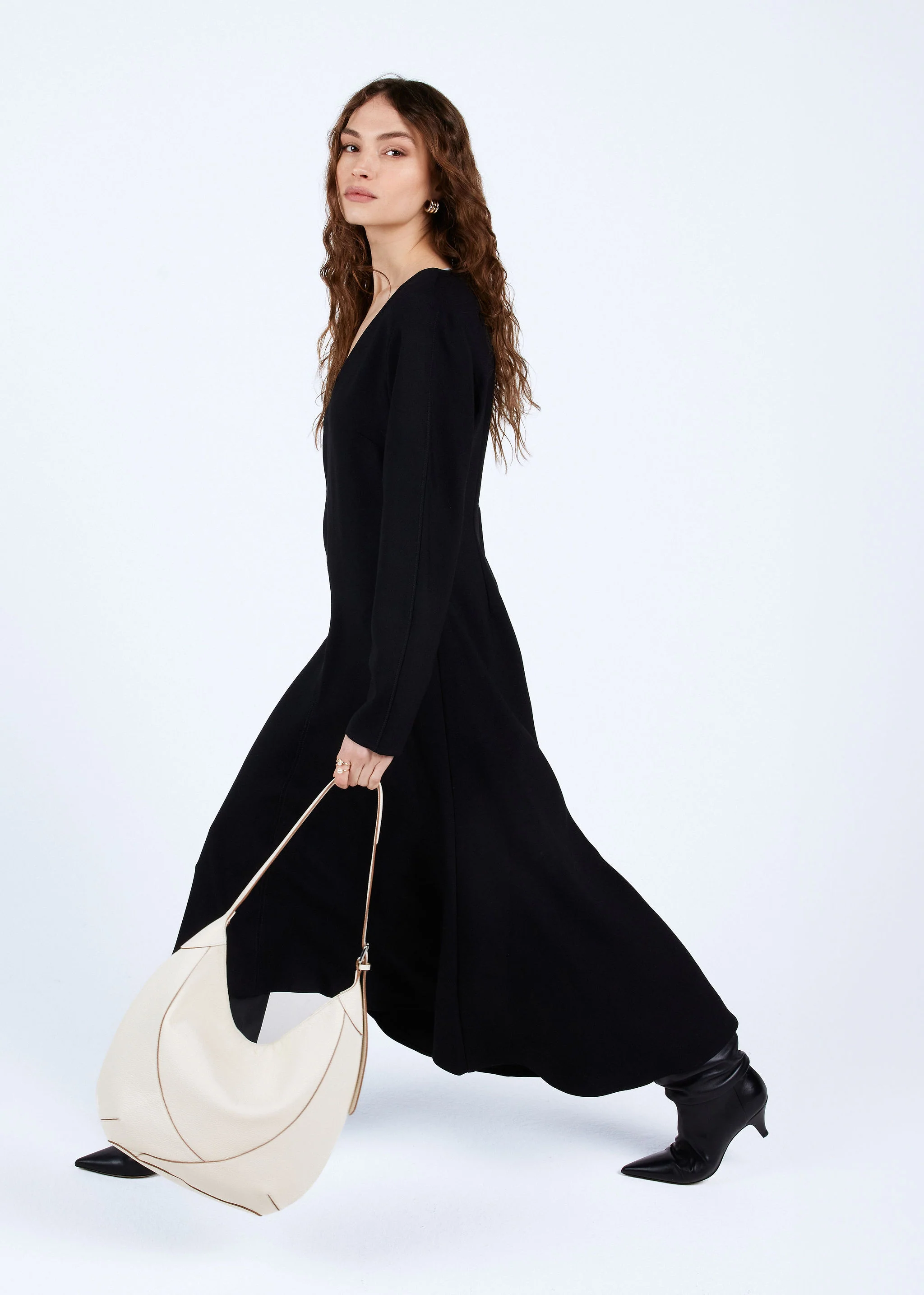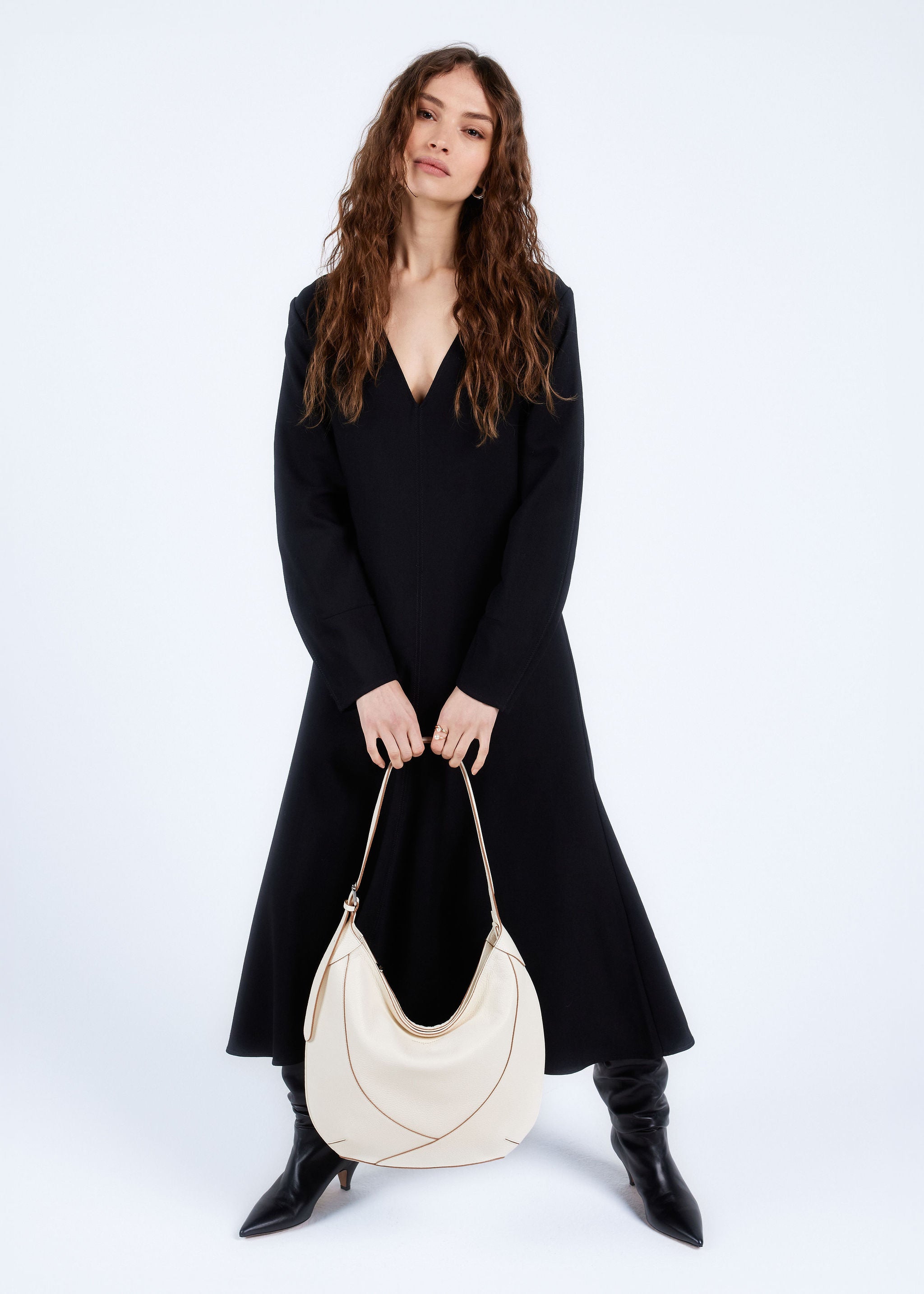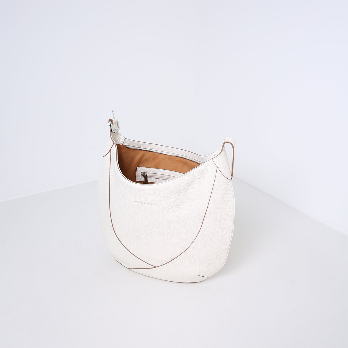 Der Ledershopper DREW verbindet mühelos Stil mit Funktionalität. Seine mittlere Größe bietet genügend Platz für Ihre täglichen Essentials, während sein einzigartiges Design mit einer halbrunden Form und geometrischen Linien sowohl der Vorder- als auch der Rückseite einen modernen, grafischen Look verleiht.