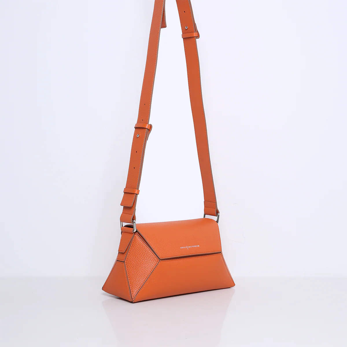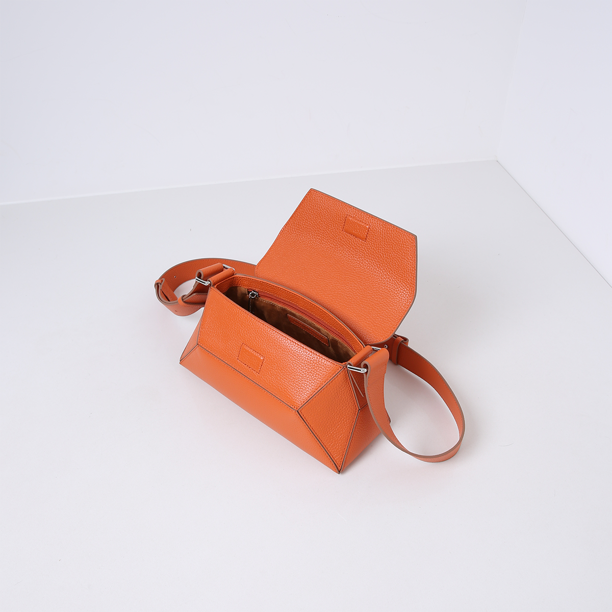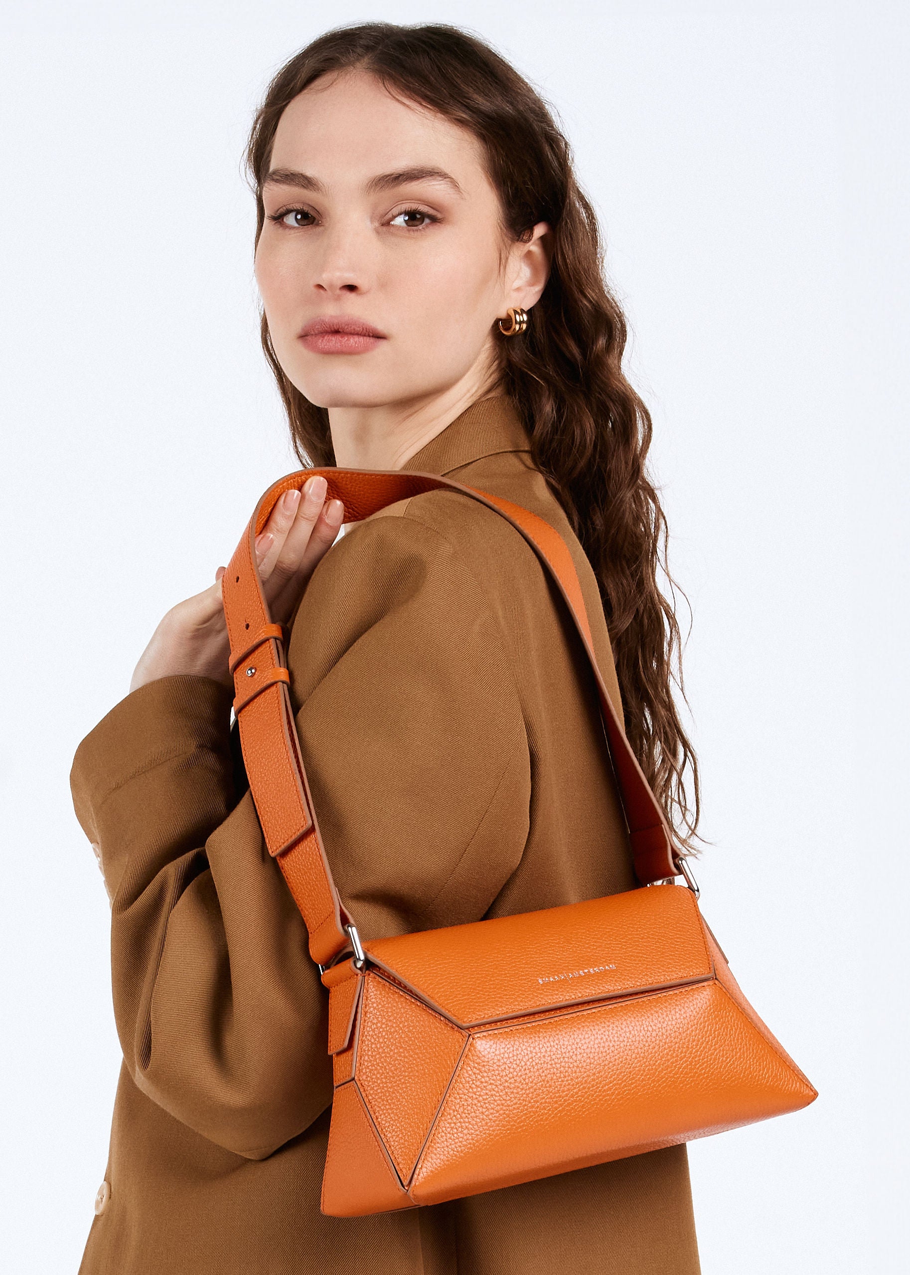 Das robuste, rechteckige Modell ist breit, aber kompakt genug, um es elegant zu tragen, egal ob man es sich über die Schulter hängt oder in der Hand hält. Die Linien im Leder verleihen der Tasche ein interessantes, puzzleartiges Aussehen, das dem Design eine moderne und anspruchsvolle Note verleiht. Der Deckel lässt sich mit einem unsichtbaren Magnetverschluss öffnen und sorgt so für ein elegantes und stromlinienförmiges Finish.