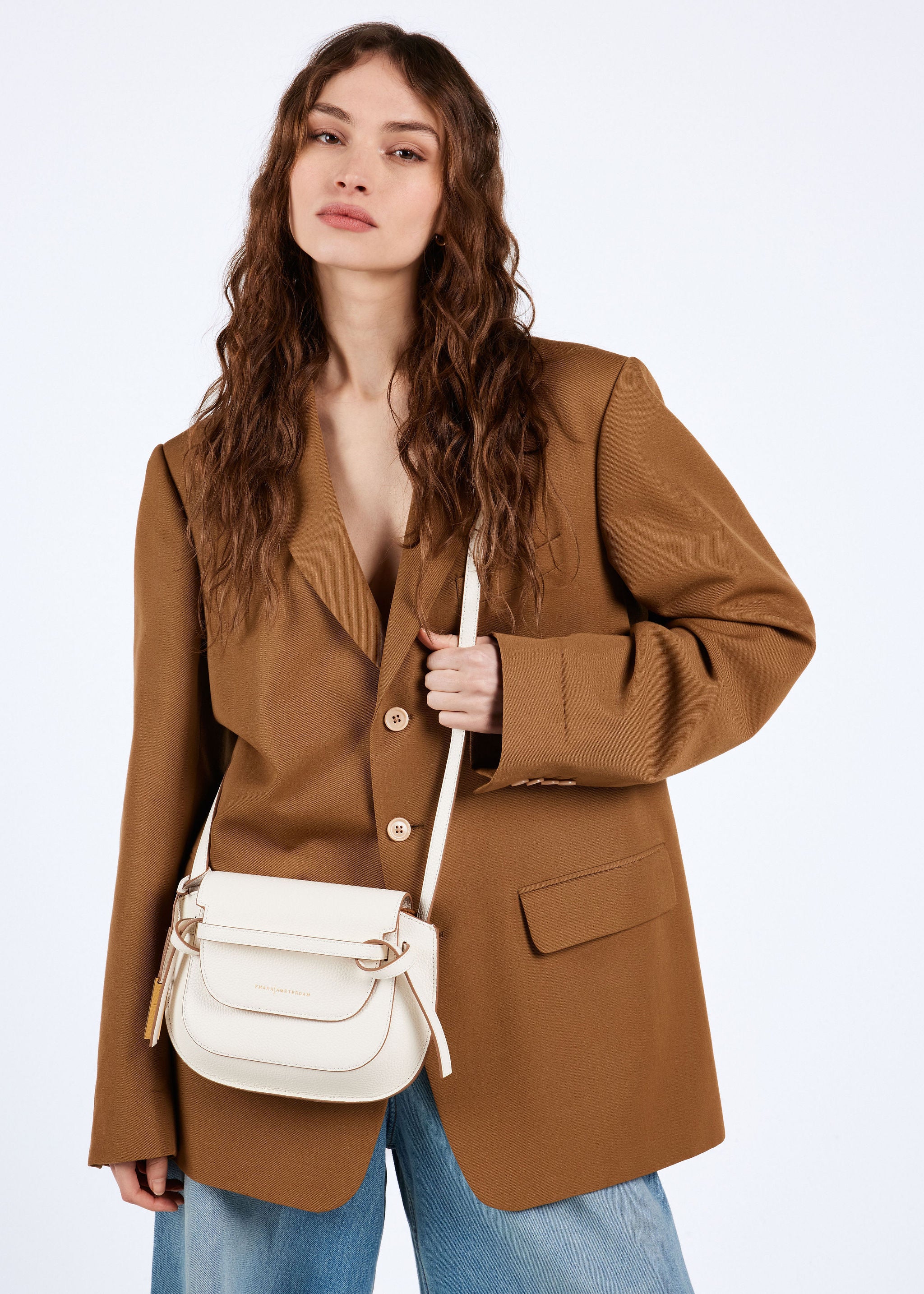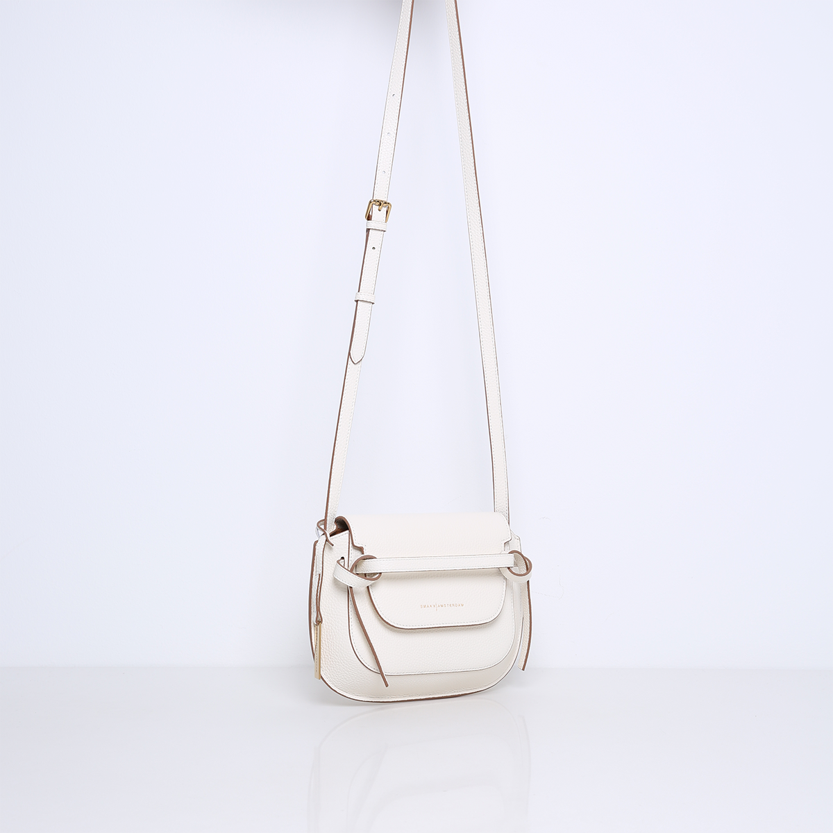 Die Tasche ist aus weichem und geschmeidigem Rindsleder gefertigt. Sie hat mehrere Innenfächer und ist mit Stoff (Viskose) gefüttert. Der Lederschulterriemen ist in der Länge verstellbar und an der Tasche befestigt.