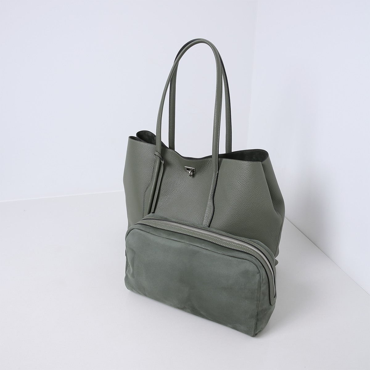 Im Inneren befindet sich eine große, passende Reißverschlusstasche, in der Sie Ihre wichtigsten Utensilien sicher und bequem verstauen können. Der Shopper selbst ist geräumig genug, um einen 13-Zoll-Laptop zu transportieren, ohne auf Stil oder Komfort verzichten zu müssen. Dank der langen Griffe können Sie ihn auch an hektischen Tagen mühelos über der Schulter tragen.