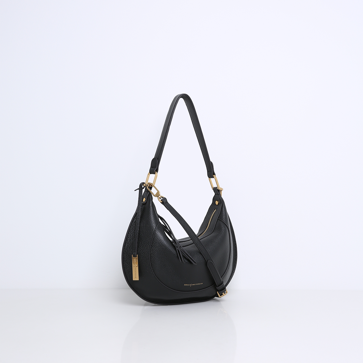 Die MARLON ist eine elegante Tasche mit einer auffälligen ovalen Satteltaschenform, die sofort ins Auge sticht. Die Tasche ist mit raffinierten Nähten und luxuriösen goldfarbenen Beschlägen versehen, die ihr einen schicken und modernen Look verleihen.