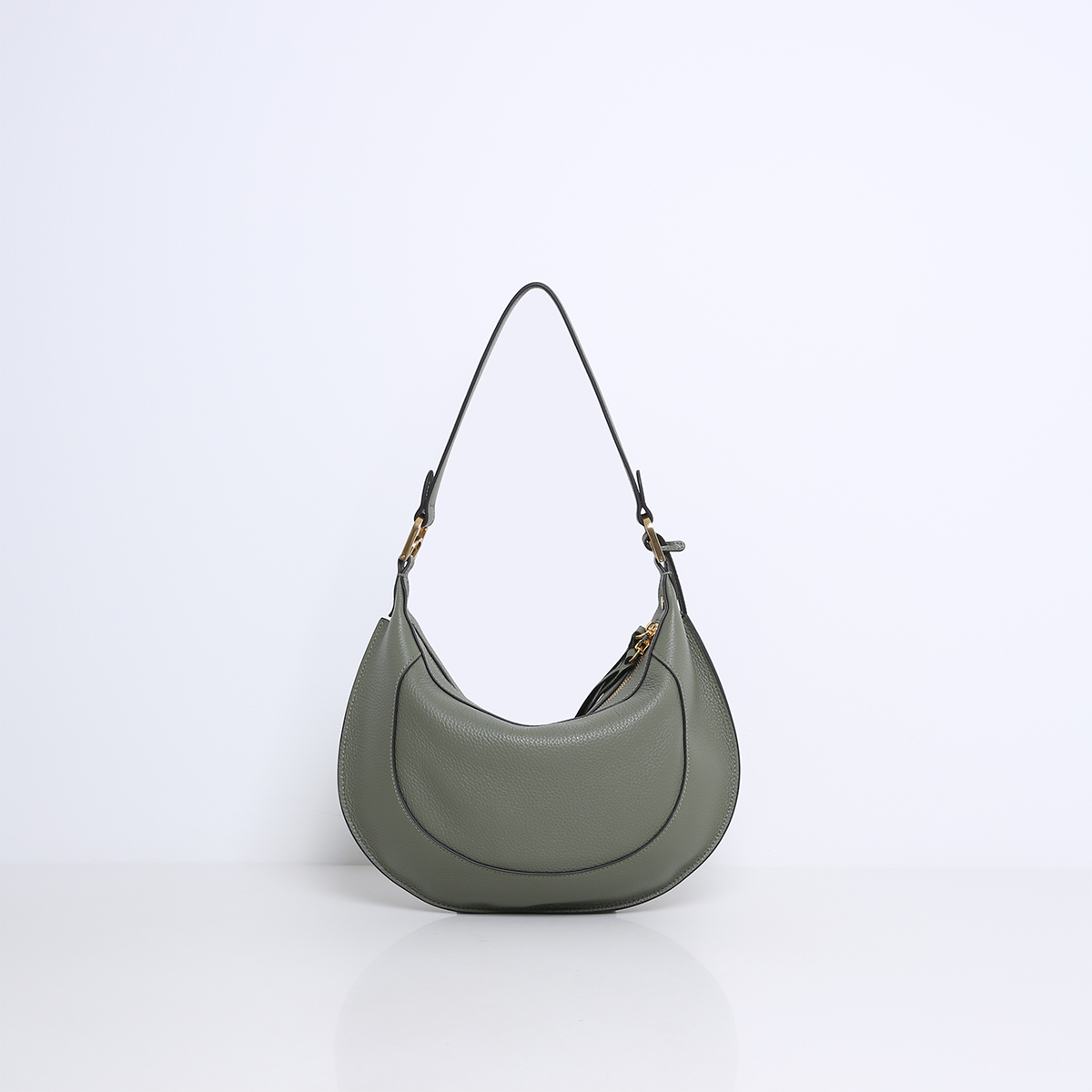 Die MARLON ist eine elegante Tasche mit einer auffälligen ovalen Satteltaschenform, die sofort ins Auge sticht. Die Tasche ist mit raffinierten Nähten und luxuriösen goldfarbenen Beschlägen versehen, die ihr einen schicken und modernen Look verleihen.