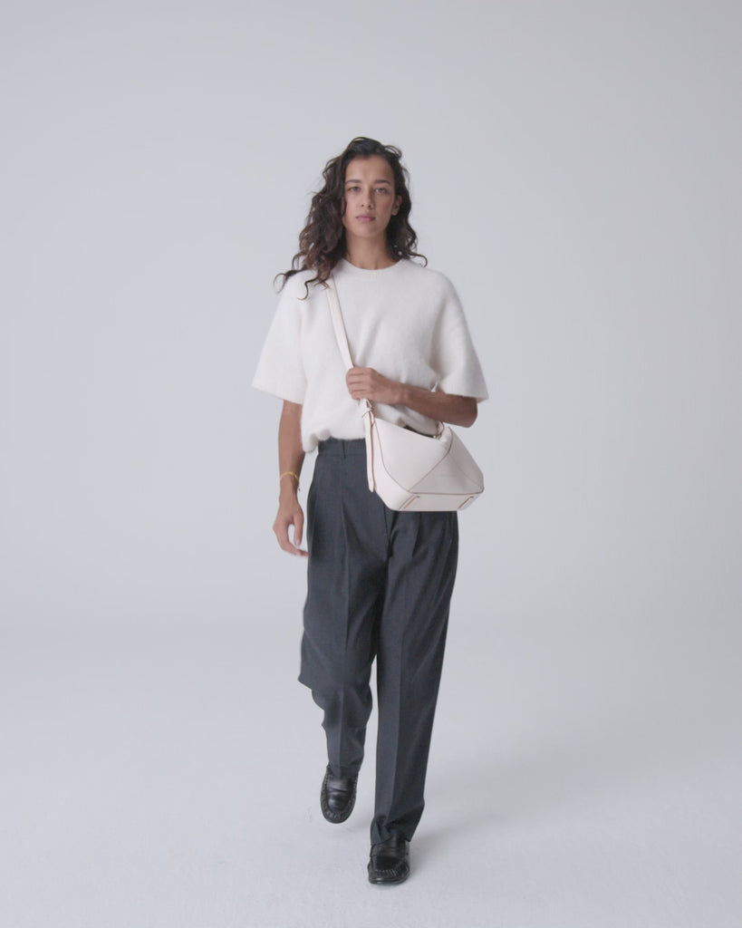 Die SAM ist aus 100 % hochwertigem Rindsleder gefertigt und mit Akzenten versehen, die ihr ein weiches, aber strukturiertes Aussehen verleihen. Das Innere ist vollständig mit 100 % Viskose gefüttert und durchdacht unterteilt, damit Sie Ihre täglichen Utensilien übersichtlich verstauen können. Der robuste Reißverschluss hält all Ihre Sachen sicher an ihrem Platz, während die silberfarbenen Beschläge für einen raffinierten, zeitgemäßen letzten Schliff sorgen.