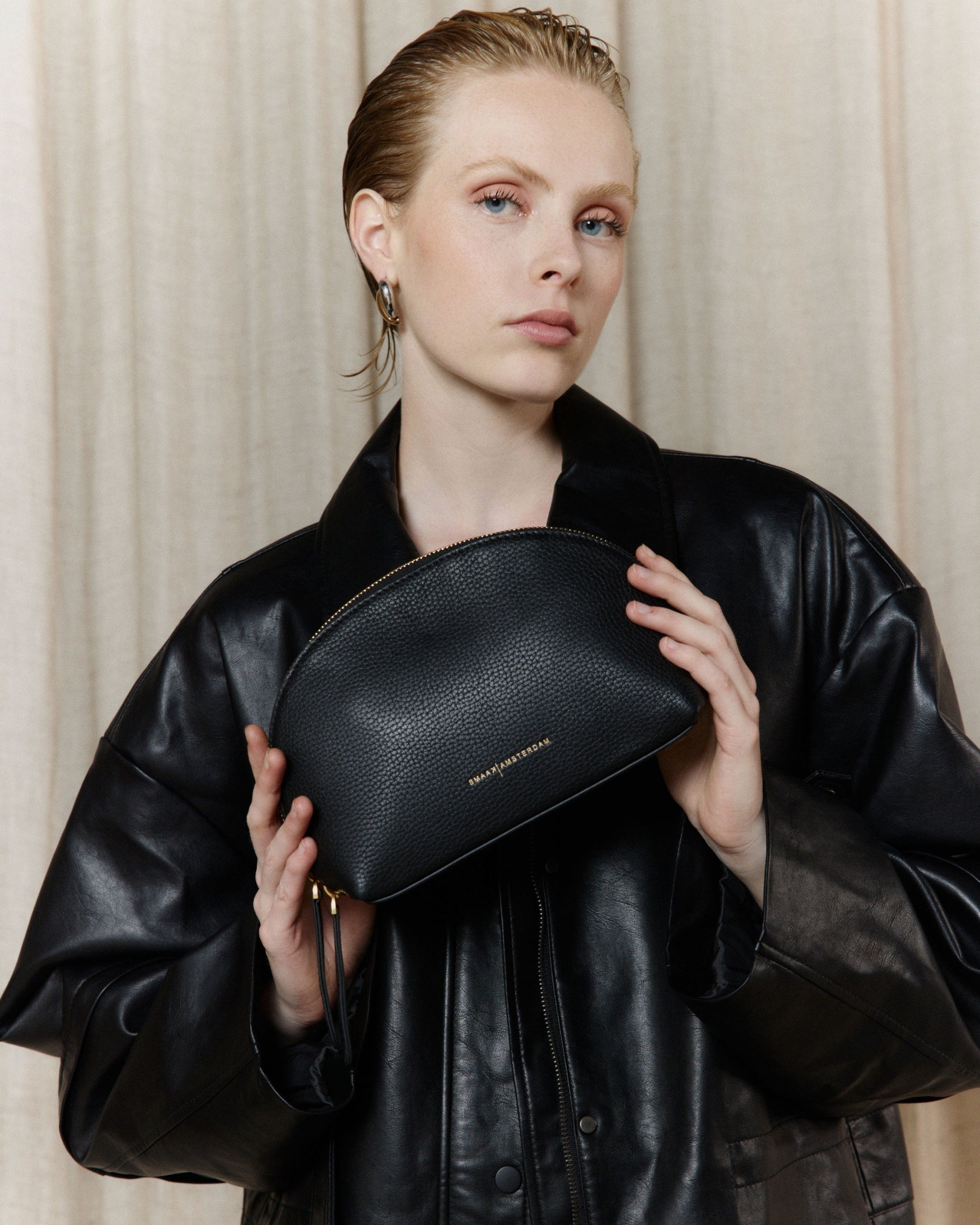 Entdecken Sie unser luxuriöses Leder-Kosmetiketui, das für Vielseitigkeit und Stil steht. Diese schöne Kosmetiktasche kann auch als Clutch, zusätzliche Innentasche oder Kulturbeutel verwendet werden. Der Innenraum bietet zusätzliche Funktionalität mit separaten Innentaschen, die sich perfekt zur Aufbewahrung eines Mini-Spiegels eignen, und separaten Fächern speziell für Lippenstift, Wimperntusche und andere (Schmink-)Dinge. Der Innenraum ist mit weichem Veloursleder (Viskose) ausgekleidet, das einen luxuriösen Touch und zusätzlichen Schutz für Ihre Gegenstände bietet. Die Tasche hat eine elegante, runde Form und verfügt über einen Reißverschluss an der Oberseite, der von beiden Seiten geöffnet werden kann, um den Zugang zu erleichtern und ein schickes Aussehen zu gewährleisten. Diese Kosmetiktasche verbindet Funktionalität mit raffiniertem Stil und eignet sich sowohl für den täglichen Gebrauch als auch für Reisen.