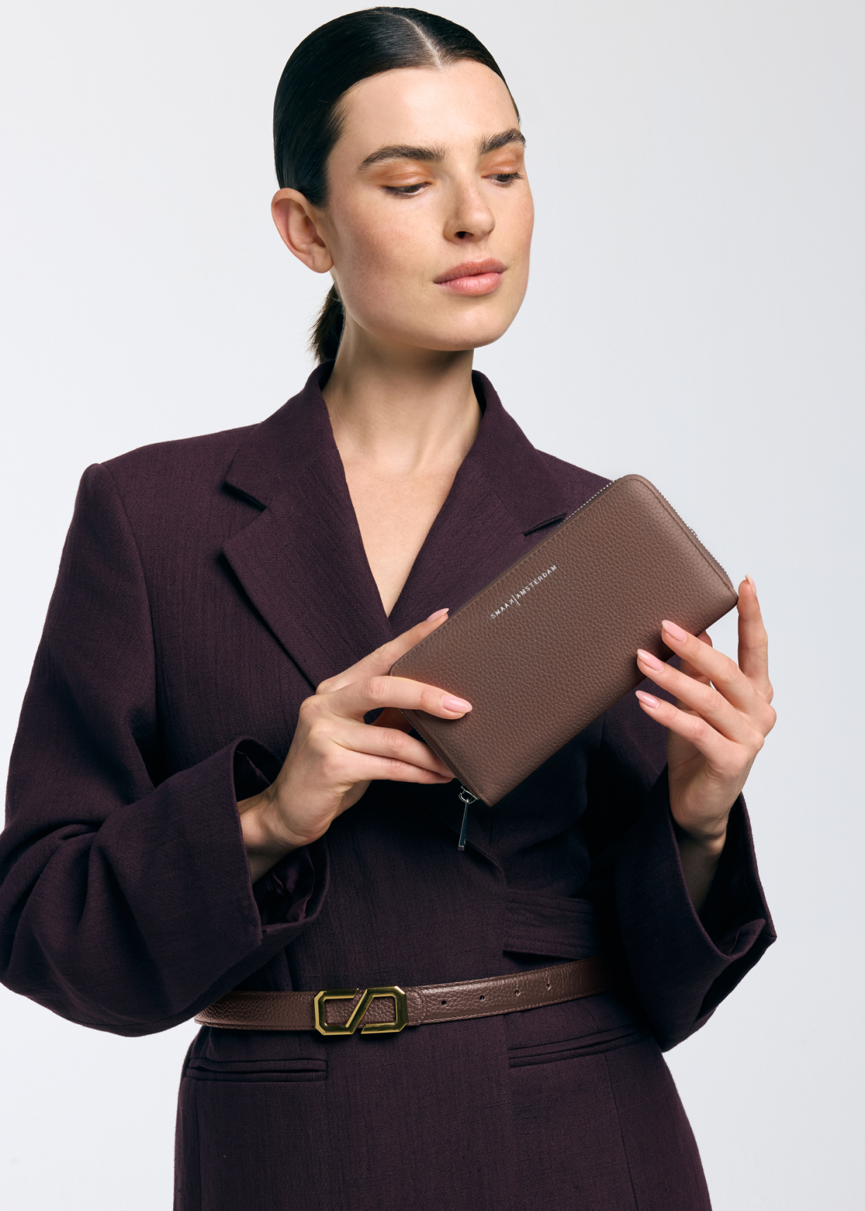 Die LUNA bietet die perfekte Balance zwischen Stil und Funktionalität. Mit Platz für all Ihre Karten, Quittungen, Münzen und mehr sorgt das straff organisierte Innere dafür, dass Sie immer den Überblick behalten. Ein raffiniertes Branding auf der Vorderseite und ein maßgeschneiderter Reißverschluss mit dezentem Smaak runden den Look ab.