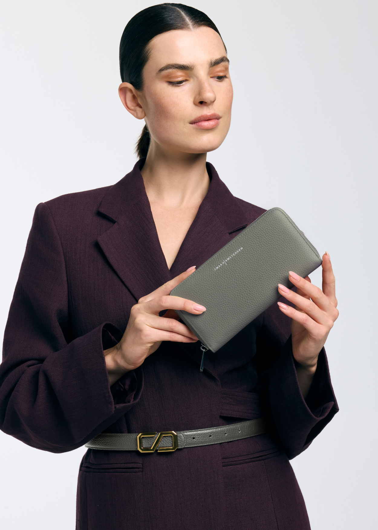 Die LUNA bietet die perfekte Balance zwischen Stil und Funktionalität. Mit Platz für all Ihre Karten, Quittungen, Münzen und mehr sorgt das straff organisierte Innere dafür, dass Sie immer den Überblick behalten. Ein raffiniertes Branding auf der Vorderseite und ein maßgeschneiderter Reißverschluss mit dezentem Smaak runden den Look ab.