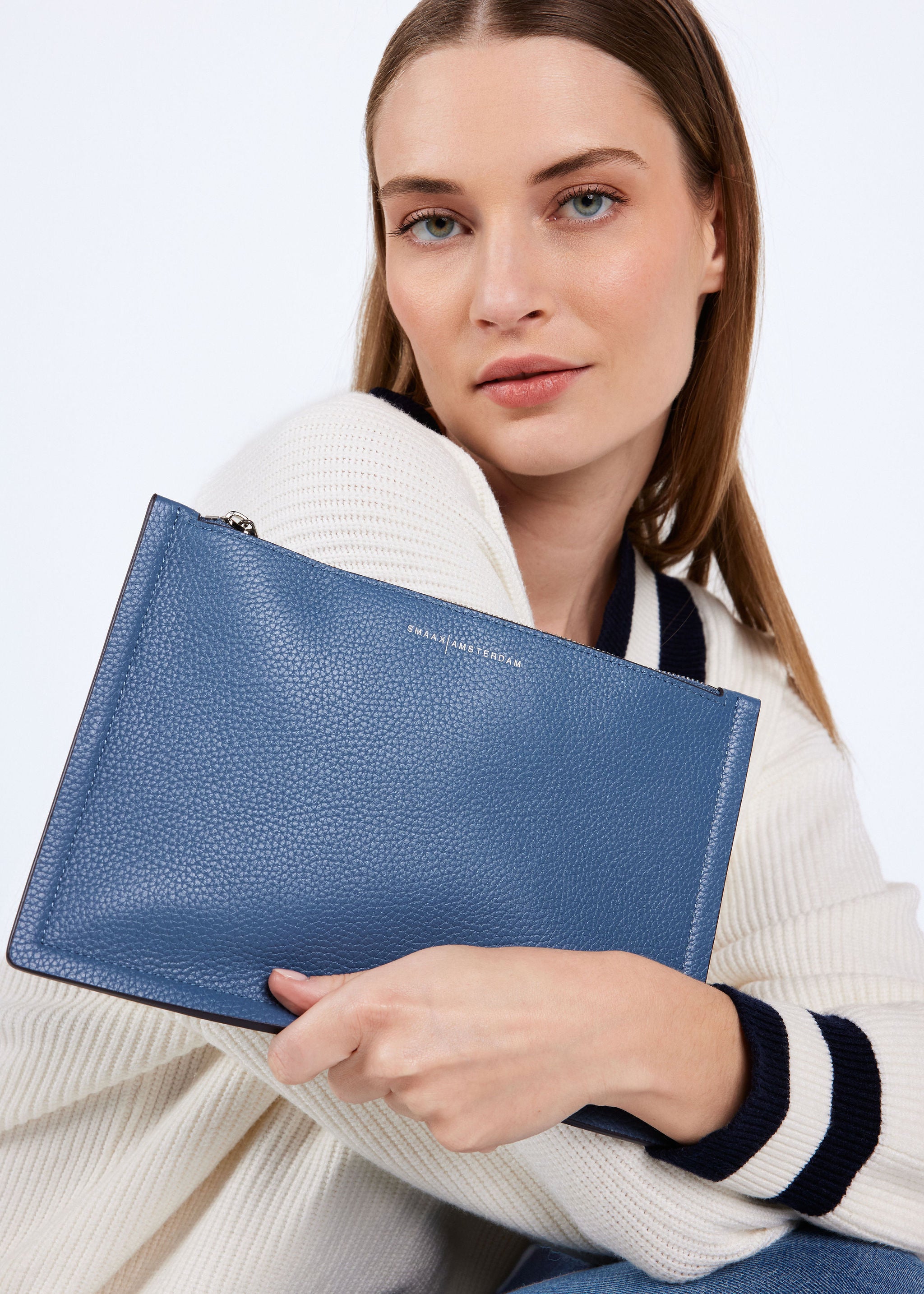 Entdecken Sie unser vielseitiges Lederetui, das sich perfekt als Clutch oder als zusätzliche Innentasche verwenden lässt. Diese stilvolle Tasche hat keine zusätzlichen Innentaschen und ist daher wunderbar geräumig und schlicht. Die Innenseite ist mit luxuriösem Veloursleder (Viskose) gefüttert, das sich weich anfühlt und Ihre Habseligkeiten zusätzlich schützt. Der Reißverschluss an der Oberseite sorgt dafür, dass alles sicher verstaut ist. Dank ihres flachen Designs passt diese Tasche problemlos in größere Taschen, während sie als Clutch eine elegante Ergänzung zu ELKEm Outfit ist.