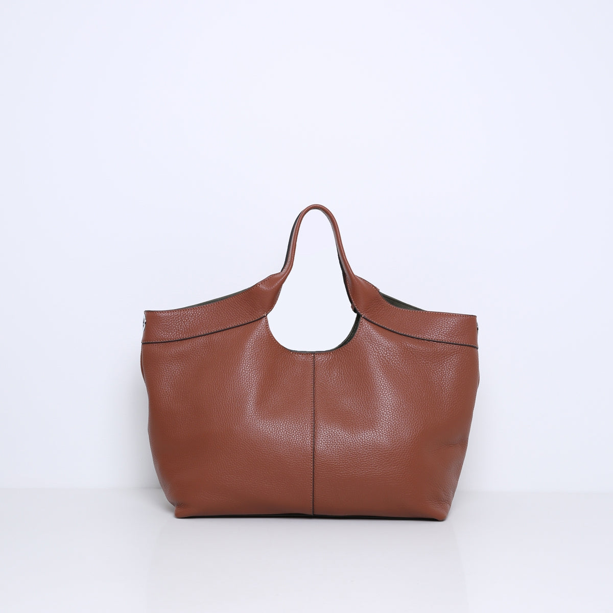 Die Tasche ist aus weichem, geschmeidigem Rindsleder gefertigt. Sie verfügt über mehrere Innenfächer und ist mit Wildleder (Viskose) gefüttert. Der abnehmbare, verstellbare Schulterriemen erlaubt es, die Tasche auch als Crossbody zu tragen.