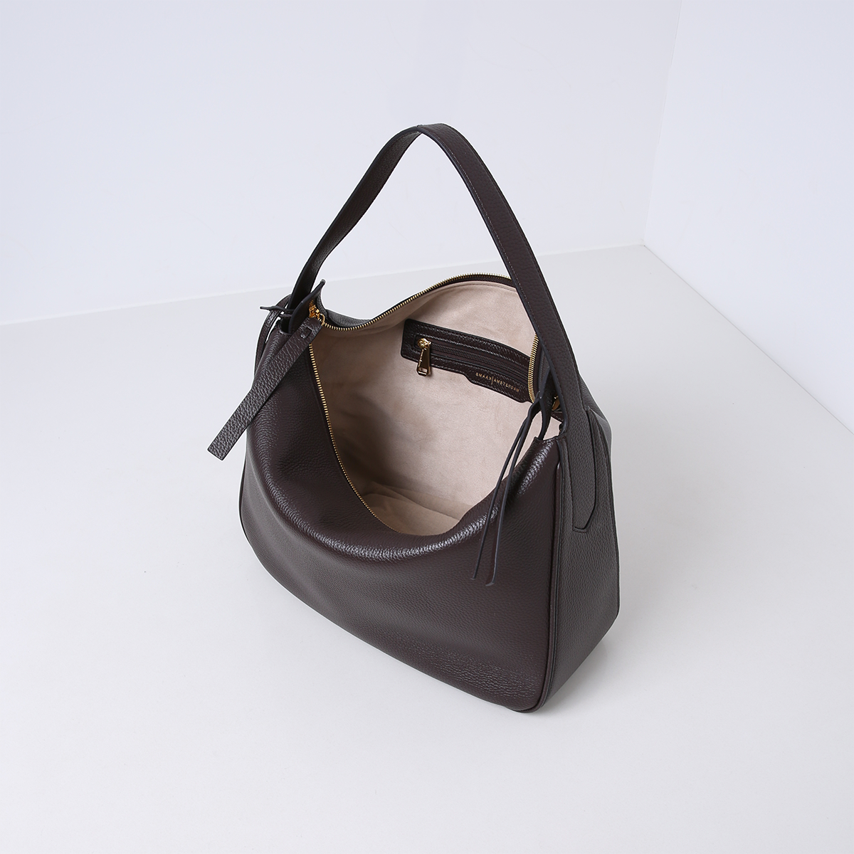 Die MONROE ist die große Schwester unserer Daniel-Tasche, eine elegante mittelgroße Hobo-Tasche, die mühelos Stil und Funktionalität vereint. Die Tasche ist mit einem luxuriösen, goldfarbenen Reißverschluss versehen und hat einen festen, kurzen Riemen, mit dem Sie sie bequem über der Schulter tragen können. Außerdem ist sie mit einem extralangen Riemen ausgestattet, so dass sie auch als Crossbody-Tasche getragen werden kann. Das raffinierte Detail an der Seite macht die MONROE zu einem echten Hingucker und verleiht jedem Outfit eine schicke, einzigartige Note.