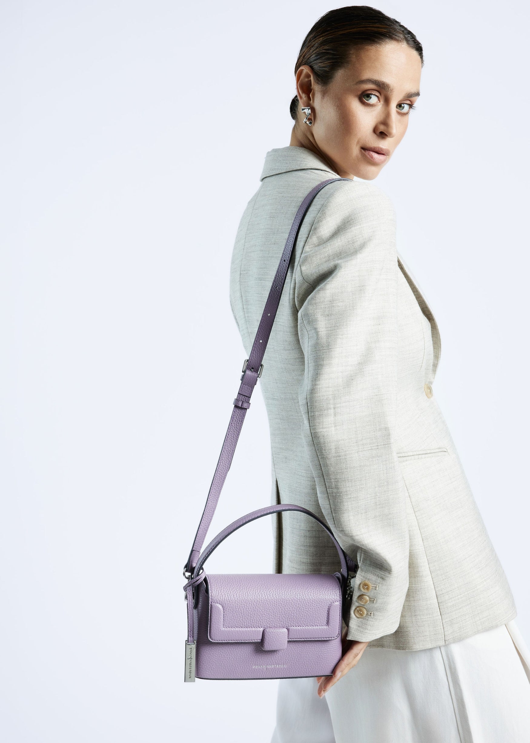 Die ALAN hat einen kurzen Henkel, der sich umklappen lässt, und einen abnehmbaren Lederriemen. Die Handtasche wird vorne mit einem Magnetverschluss geöffnet. Sie bietet viel Platz für alle wichtigen Dinge wie Telefon, Geldbörse, (Sonnen-)Brille und Schlüssel. Die rechteckige, offene Form ermöglicht einen einfachen und geordneten Zugriff auf Ihre Habseligkeiten.