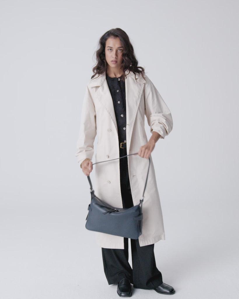Eine kompakte Umhängetasche mit einer weichen, modernen Form und einem lässigen Fall. Die schlanke Silhouette schmiegt sich schön an den Körper an und macht die Tasche für jeden Tag geeignet.