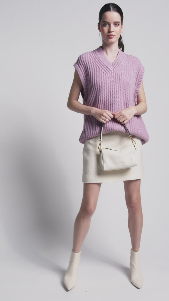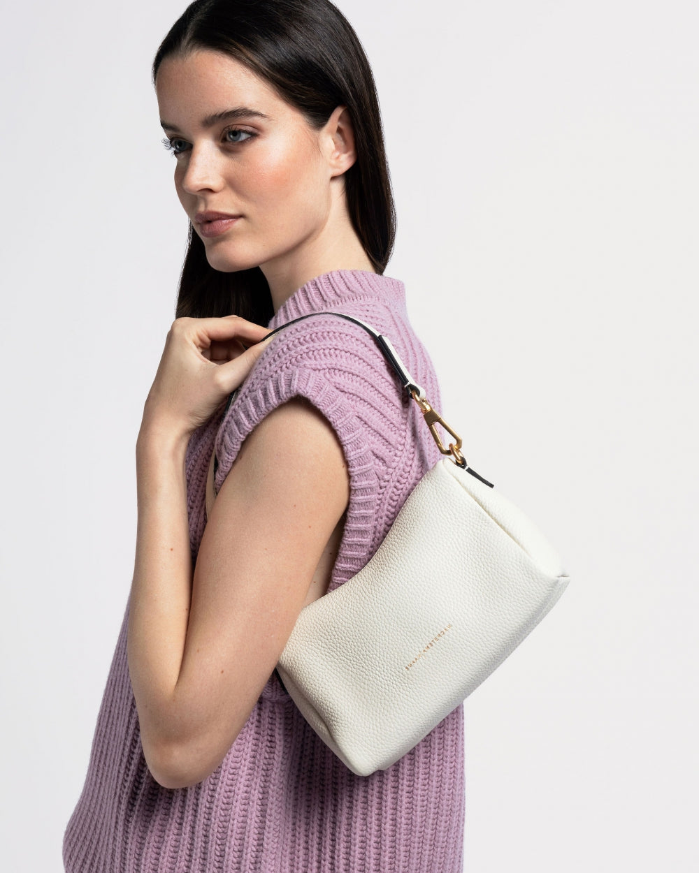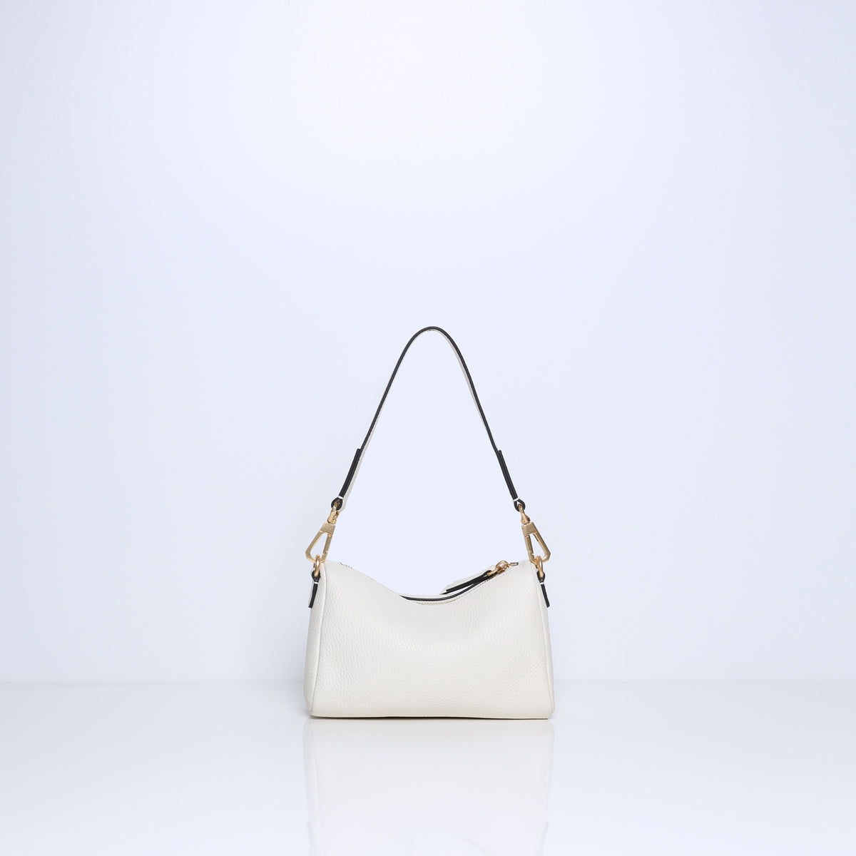 Die JACK wird mit einem kurzen Schultergurt geliefert, so dass die Tasche knapp unter der Achselhöhle getragen werden kann. Der abnehmbare Lederschulterriemen ermöglicht es Ihnen, die Tasche auch als Crossbody zu tragen. Sie verfügt über zwei Innenfächer und ist mit Wildleder (Viskose) gefüttert. Die Tasche ist aus weichem, geschmeidigem Rindsleder gefertigt.