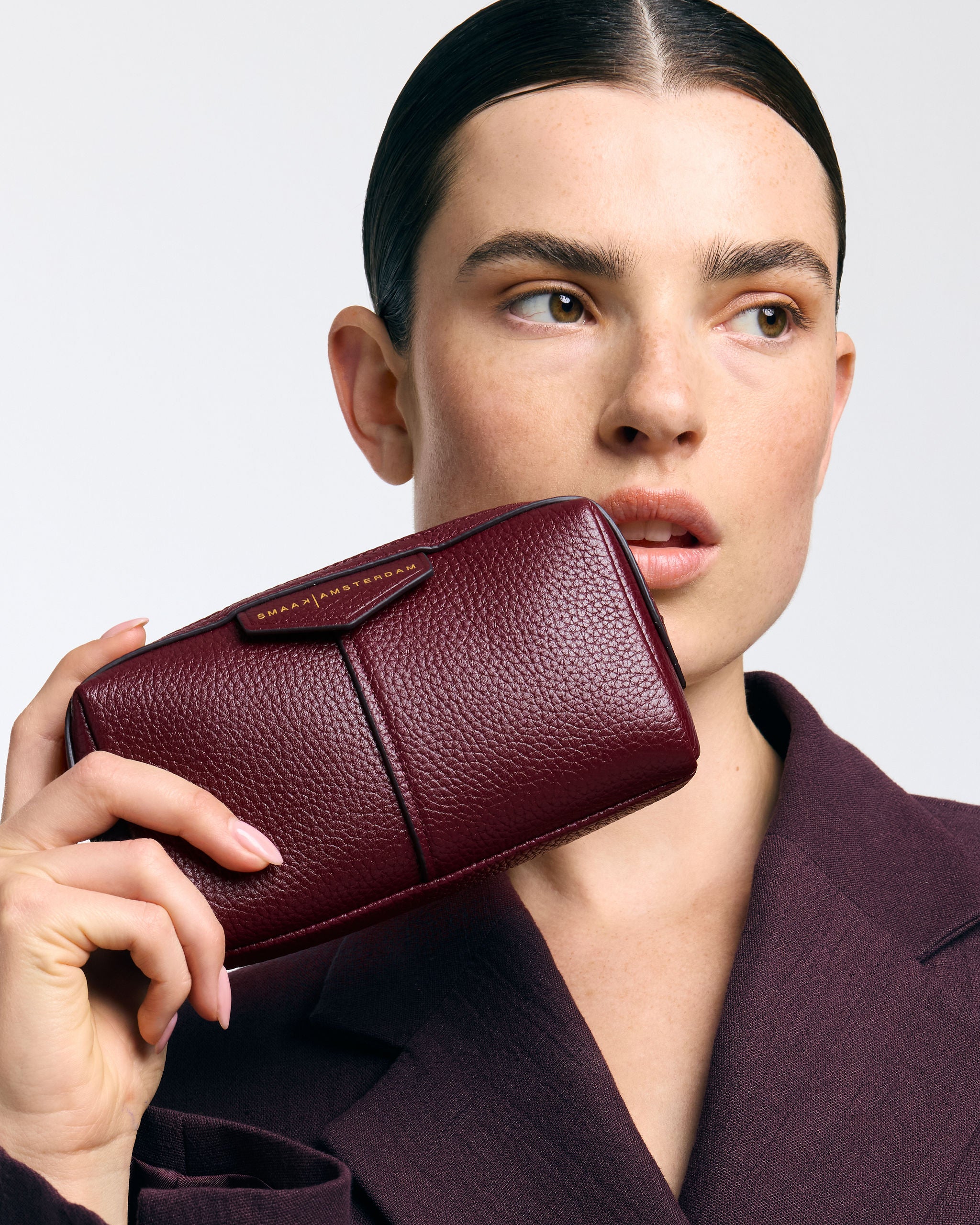 Die aus hochwertigem Leder gefertigte und mit dezenten Details versehene Tasche ist ein Must-have für Ihre Handtasche oder als minimalistische Clutch für unterwegs.