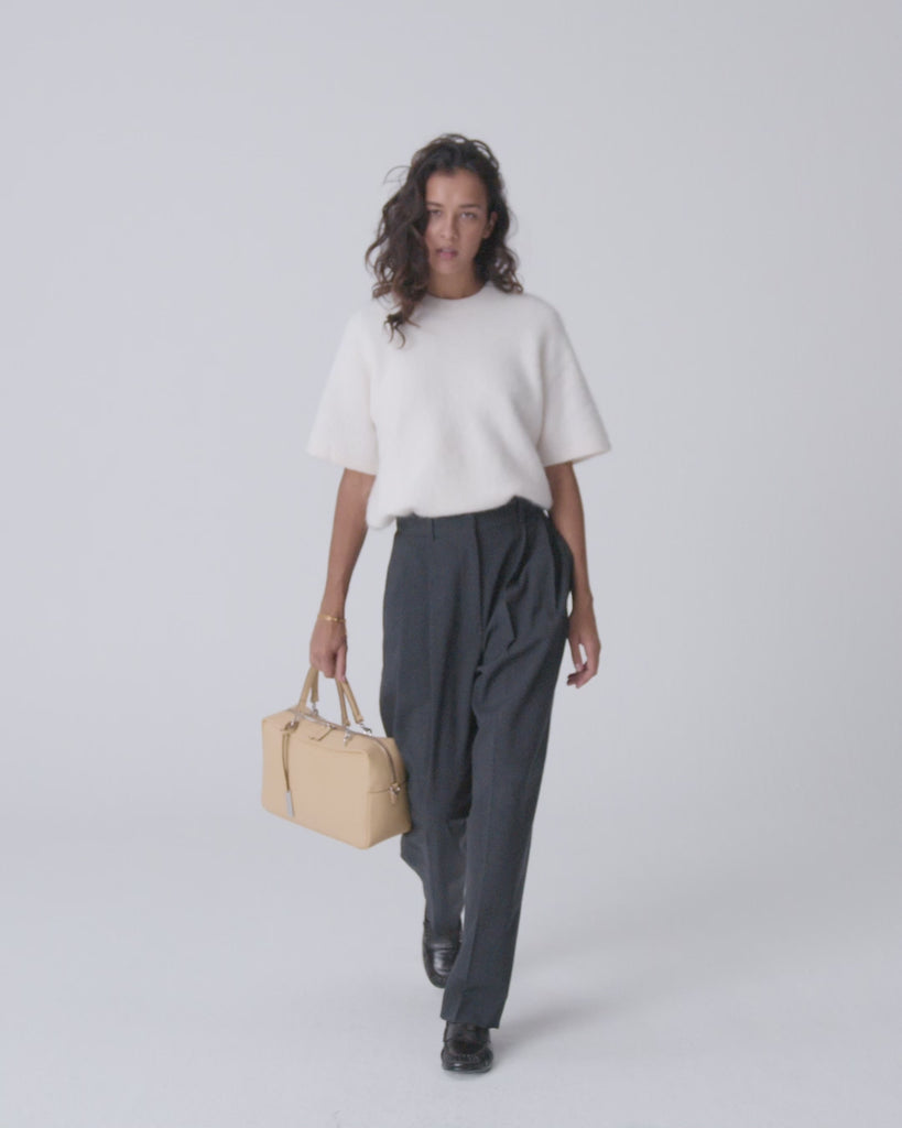 Die Tasche ist aus hochwertigem, weichem Rindsleder gefertigt und mit einem dezenten Denim-Akzent versehen, der für einen luxuriösen, aber lässigen Look sorgt. Das Innere ist vollständig mit Viskose gefüttert und durchdacht unterteilt, damit Sie Ihre täglichen Essentials übersichtlich verstauen können. Dank des robusten Verschlusses sind Ihre Sachen sicher aufbewahrt.