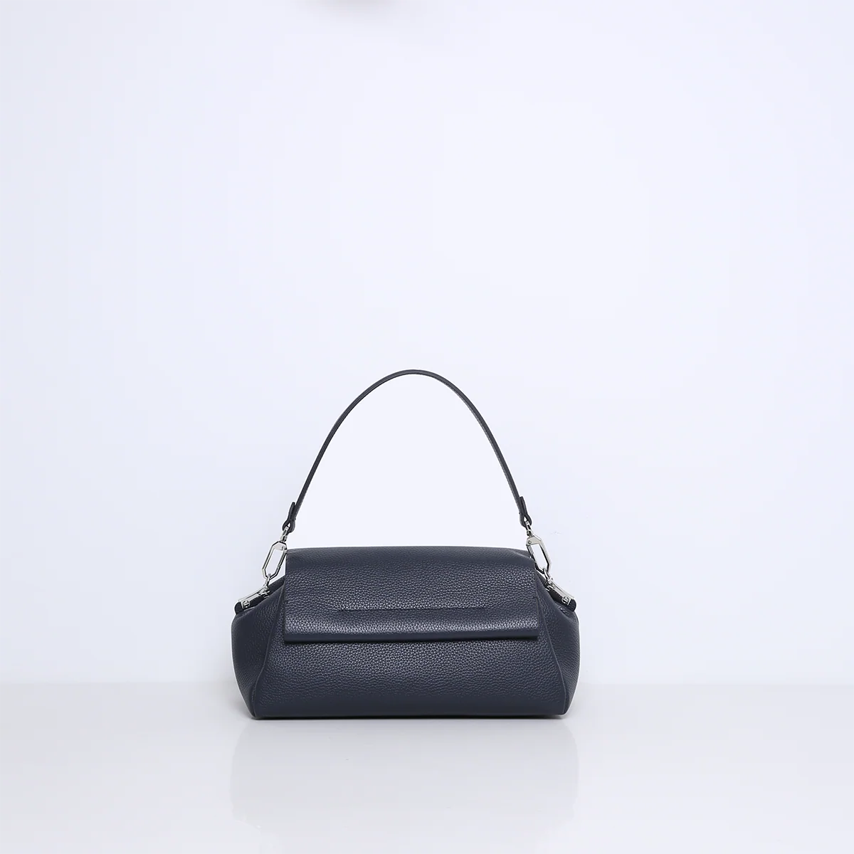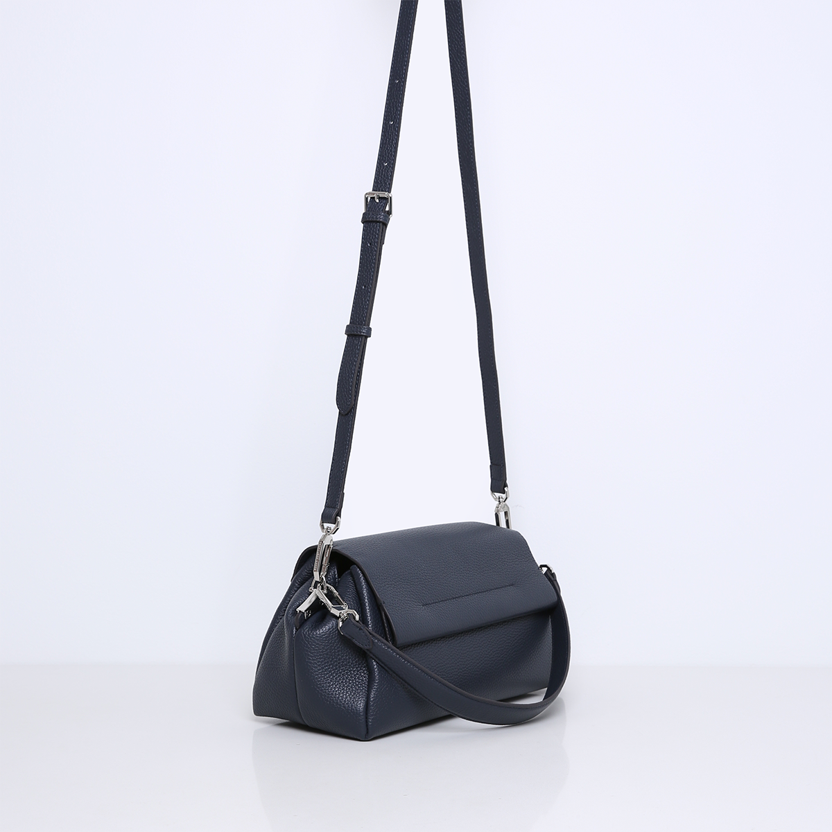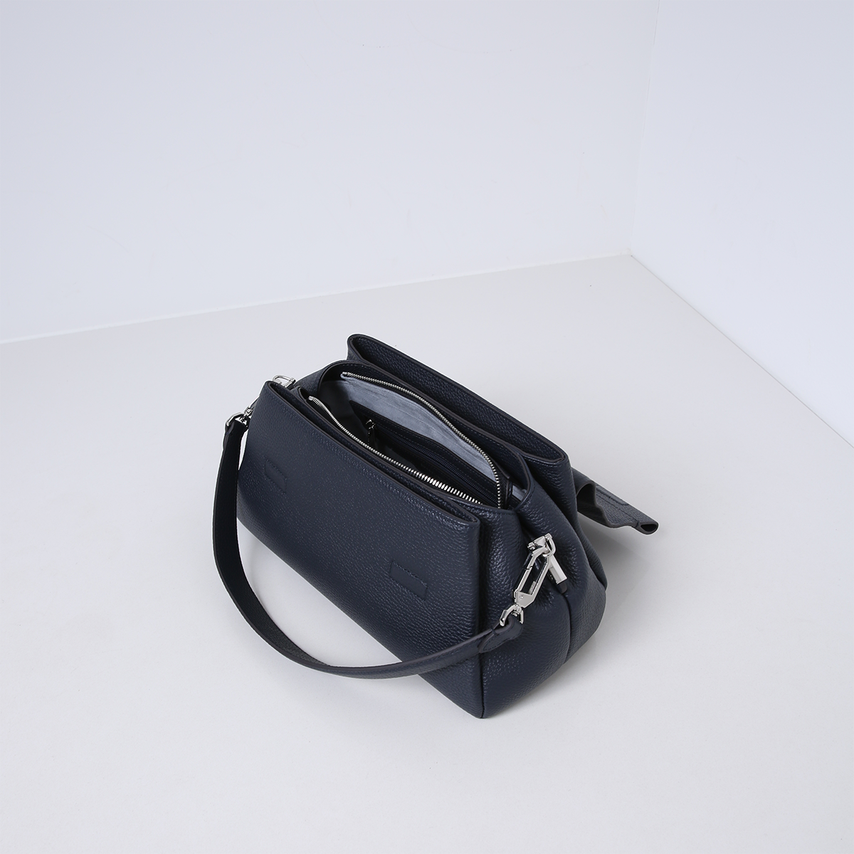 Die Tasche hat zwei abnehmbare Griffe, einen kurzen Schulterriemen und einen langen, längenverstellbaren Querriemen. Die Tasche ist aus weichem und geschmeidigem Rindsleder gefertigt und mit Veloursleder (Viskose) gefüttert.
