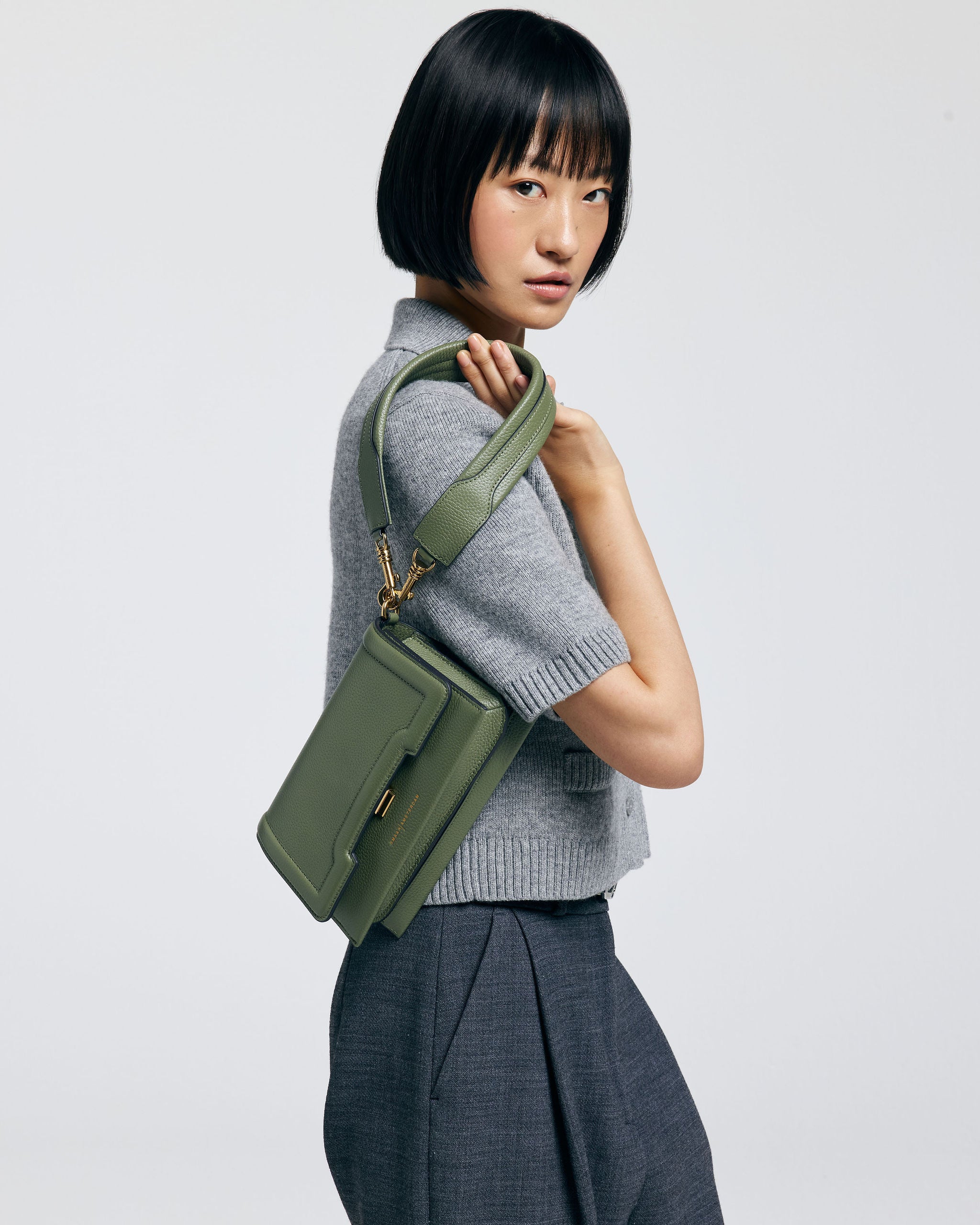 Das Design hat einen feinen Griff und schöne Details am Schulterriemen. Einzigartig ist die Anordnung der Fächer, die an ein Akkordeon erinnert.