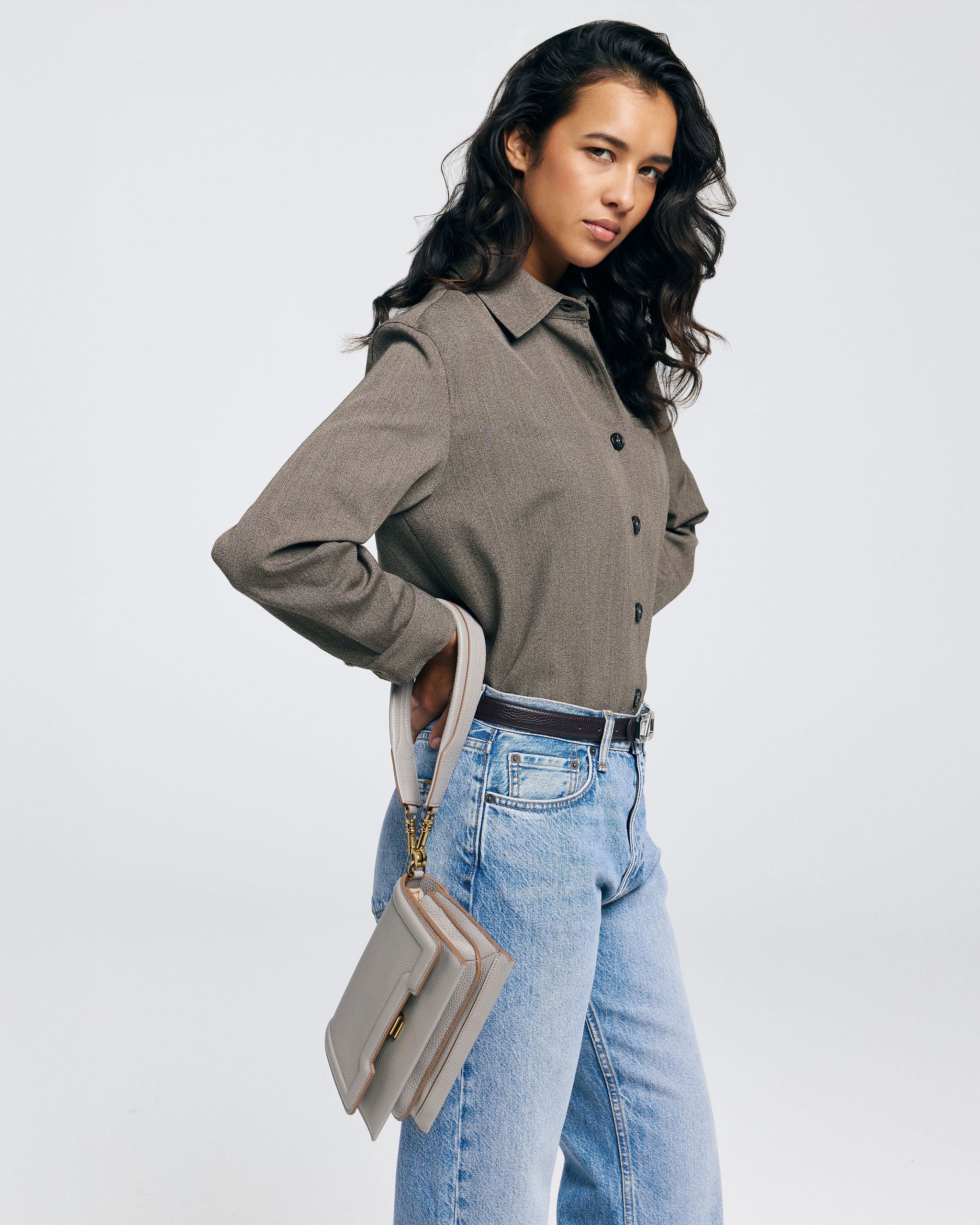 Die BITTI wird an der Vorderseite mit einem Schnappverschluss geöffnet. Im Inneren hat die Tasche zwei Fächer und ein zusätzliches offenes Fach auf der Rückseite und ist mit Suedine (Viskose) gefüttert. Die Tasche ist aus weichem und geschmeidigem Rindsleder gefertigt. Mit dem abnehmbaren Lederschulterriemen können Sie die Umhängetasche auch als Crossbody-Bag tragen.