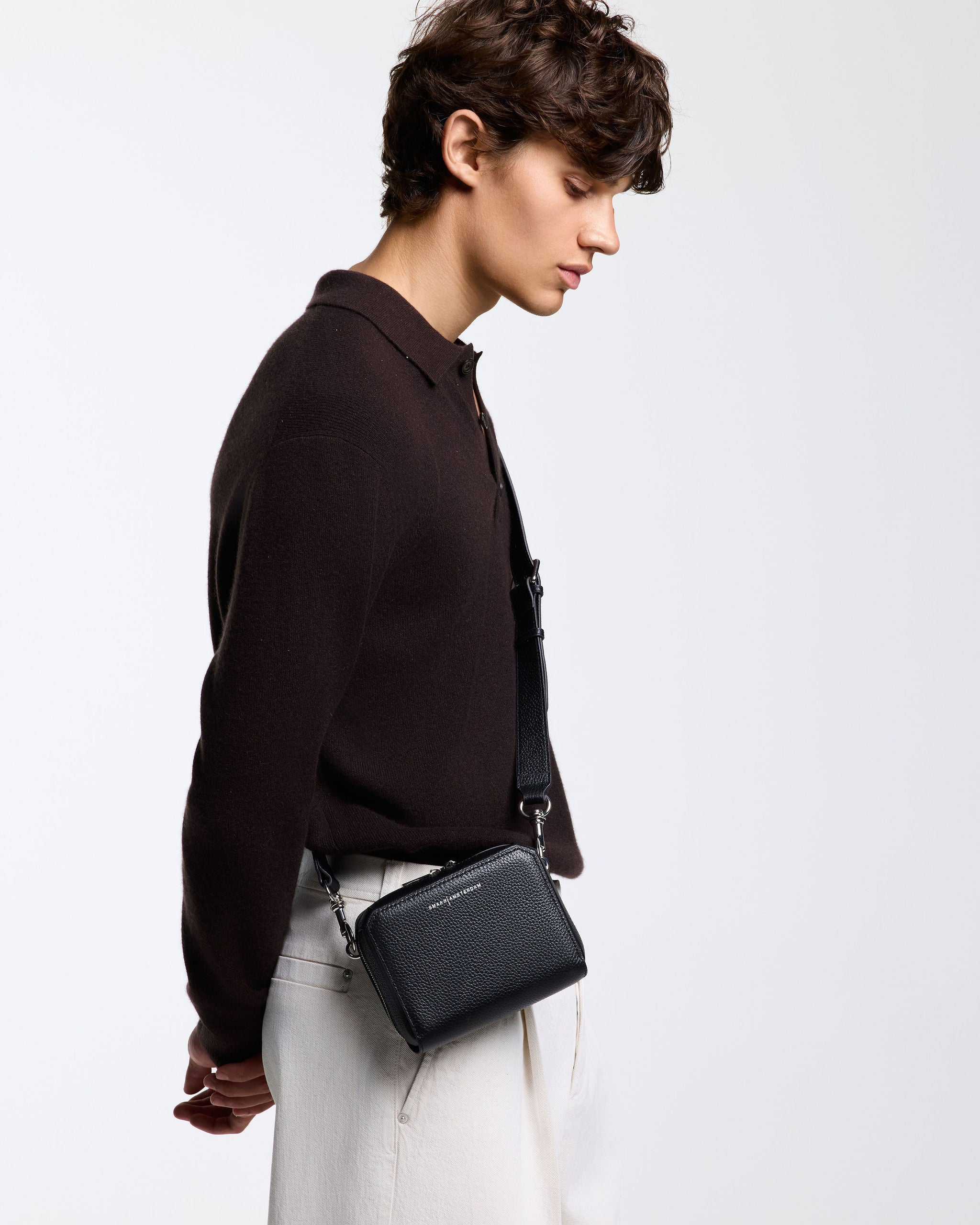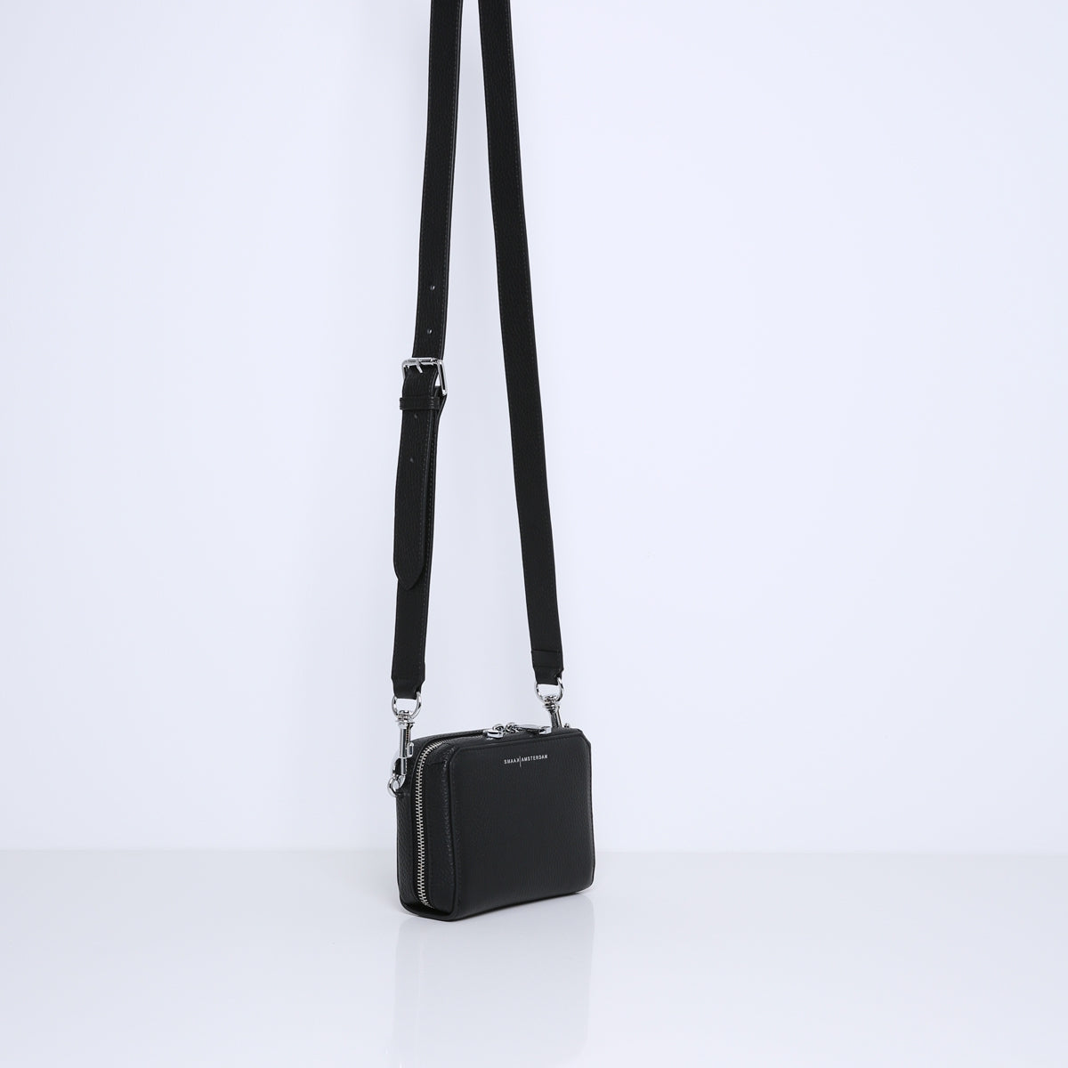 Die Tasche ist aus weichem und geschmeidigem Rindsleder gefertigt. Sie hat zwei kleine Innentaschen und ist mit Veloursleder (Viskose) gefüttert.