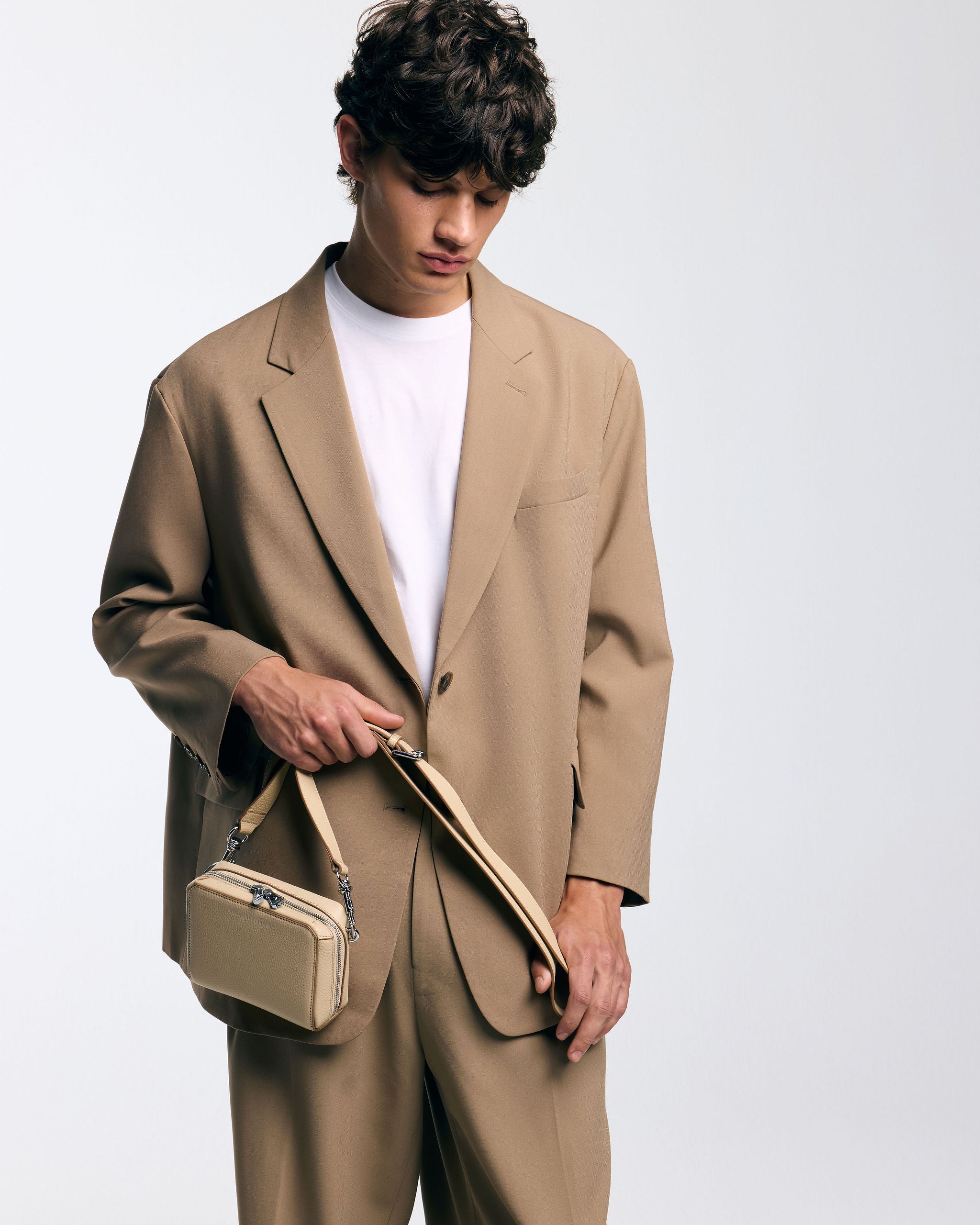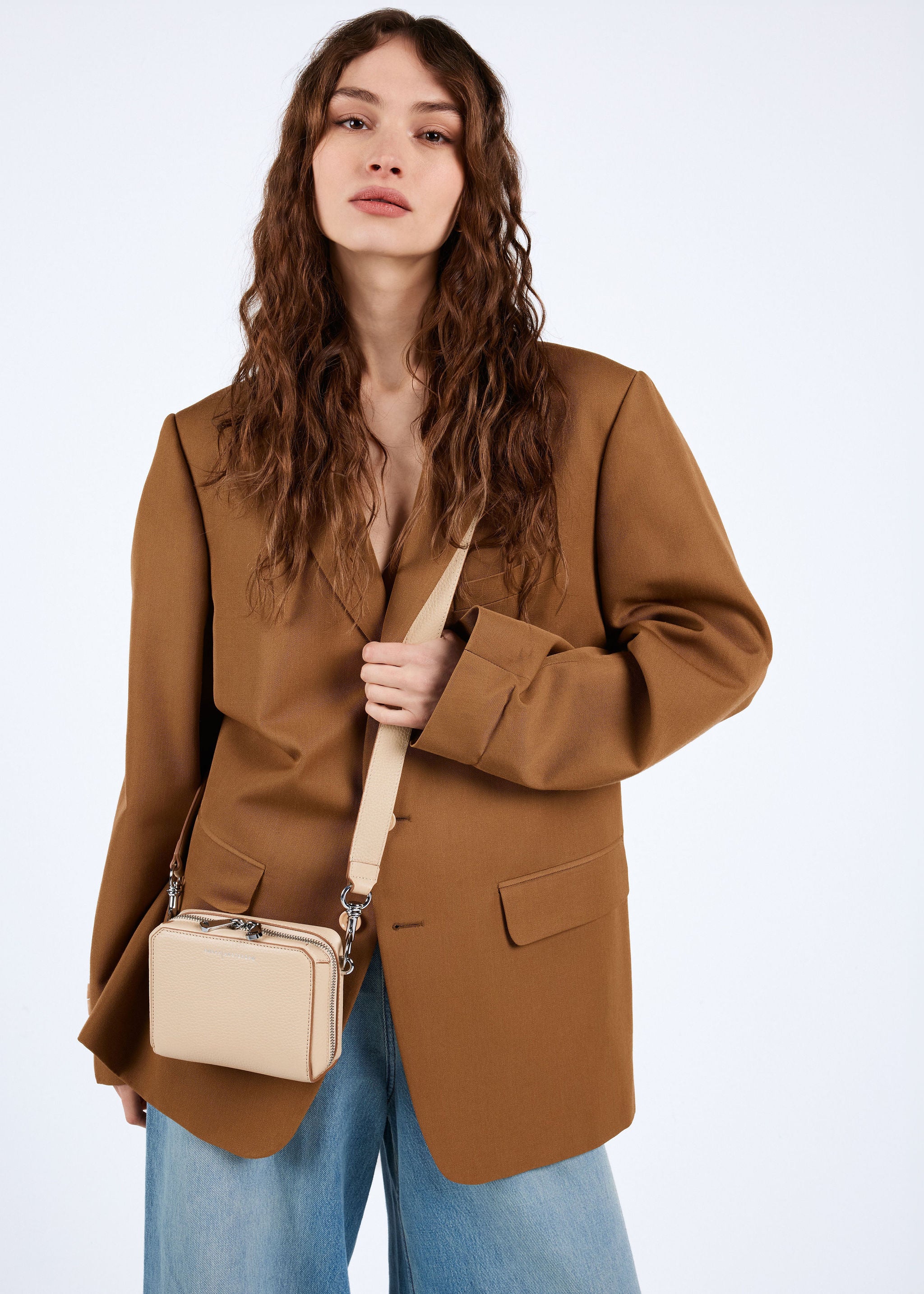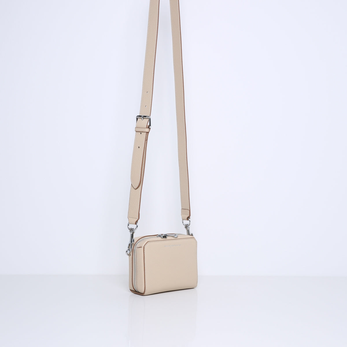 Die Tasche ist aus weichem und geschmeidigem Rindsleder gefertigt. Sie hat zwei kleine Innentaschen und ist mit Veloursleder (Viskose) gefüttert.