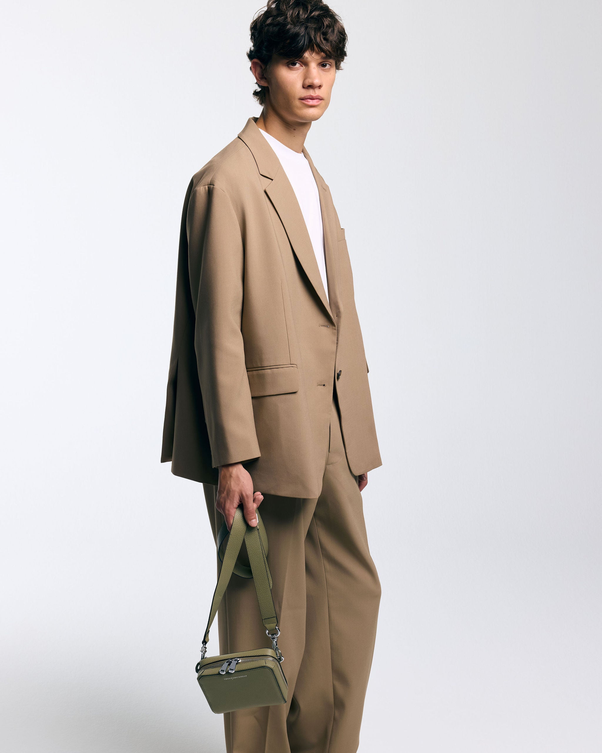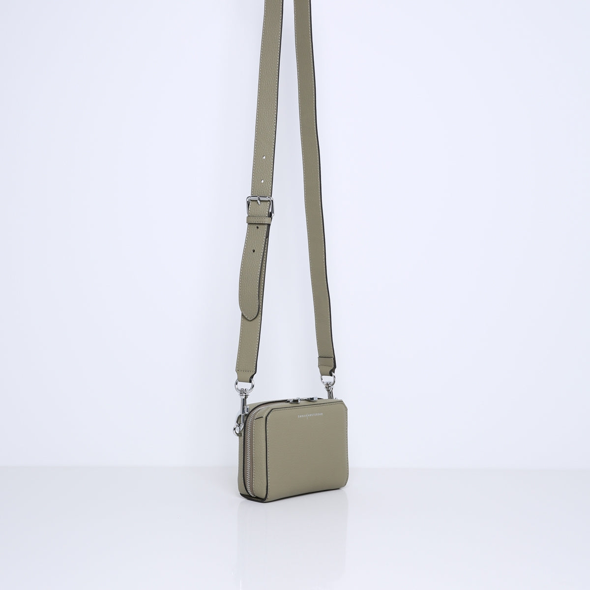 Die Tasche ist aus weichem und geschmeidigem Rindsleder gefertigt. Sie hat zwei kleine Innentaschen und ist mit Veloursleder (Viskose) gefüttert.