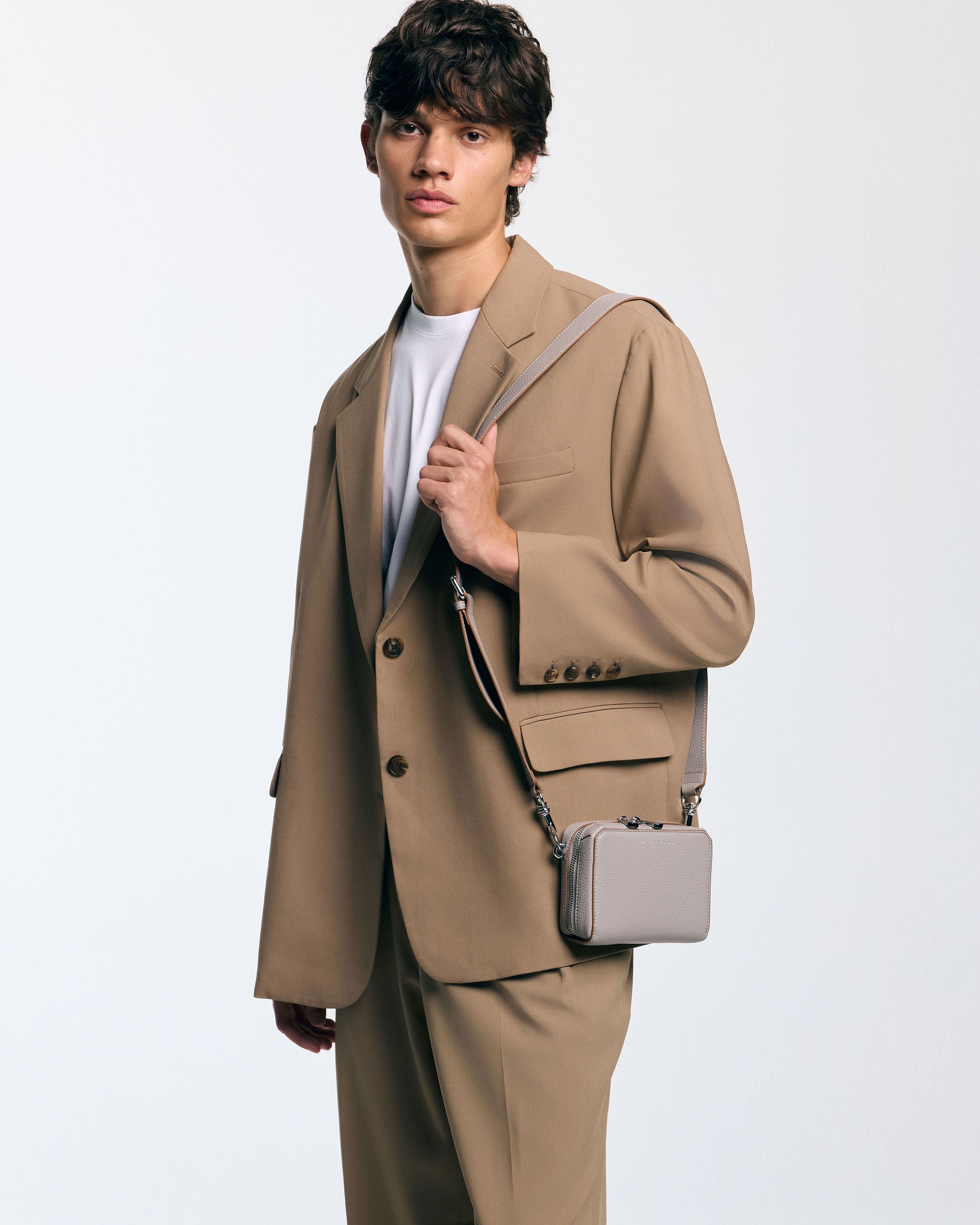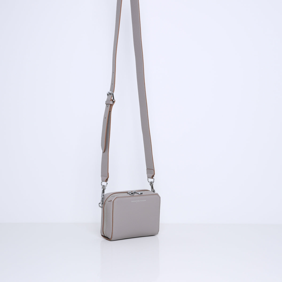 Die Tasche ist aus weichem und geschmeidigem Rindsleder gefertigt. Sie hat zwei kleine Innentaschen und ist mit Veloursleder (Viskose) gefüttert.