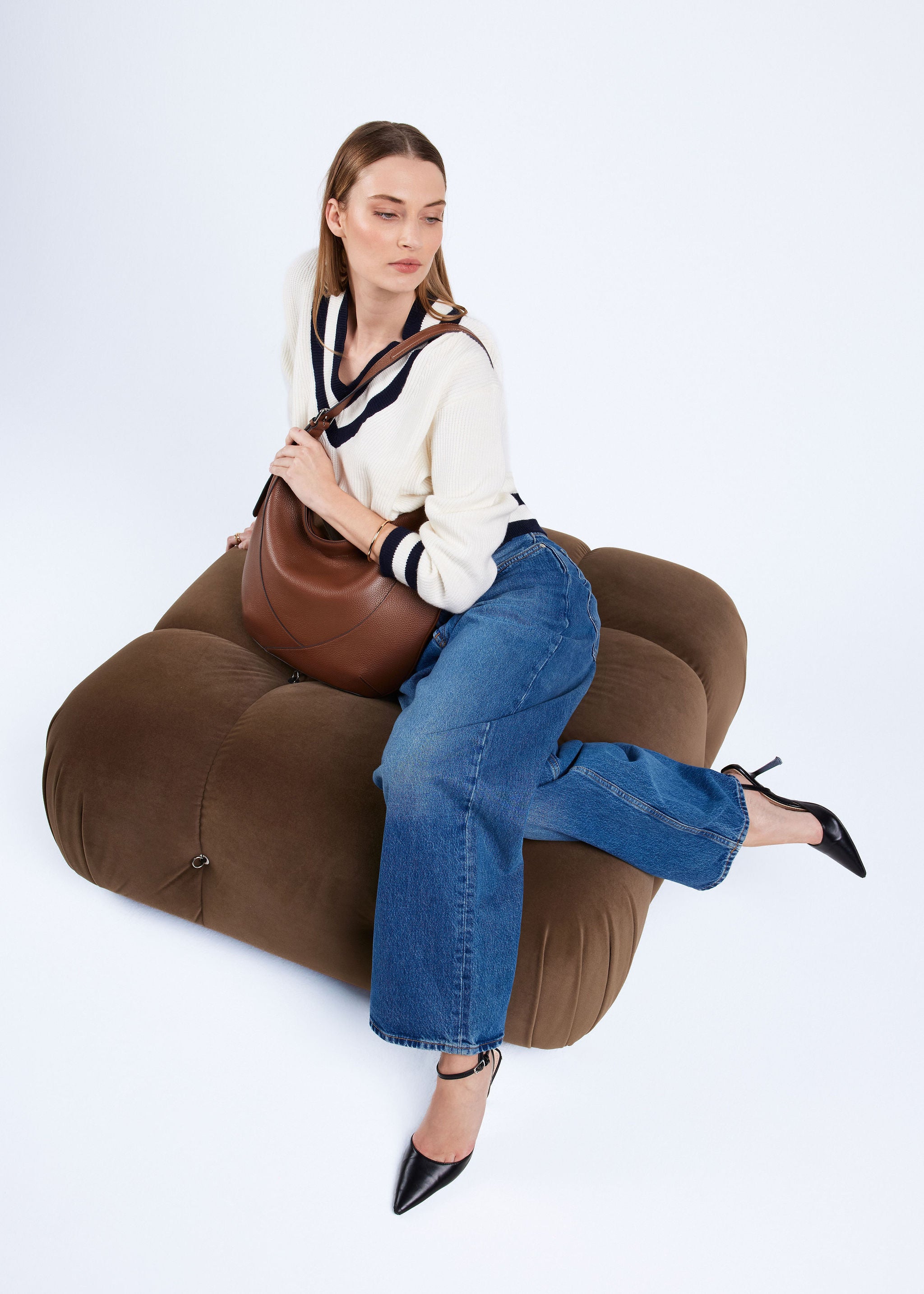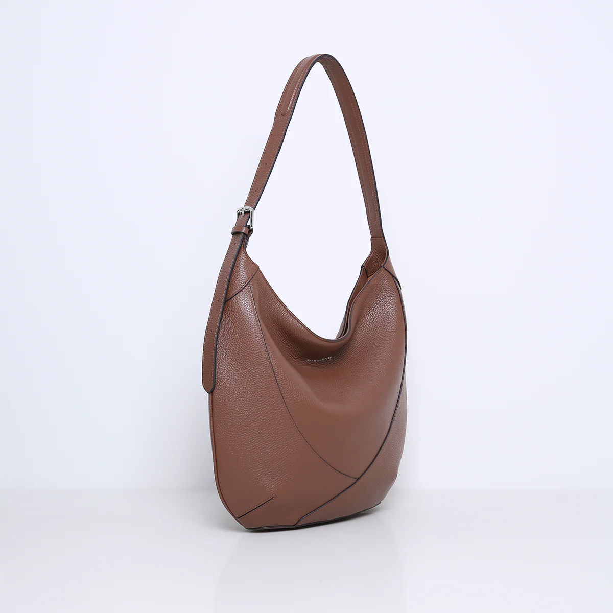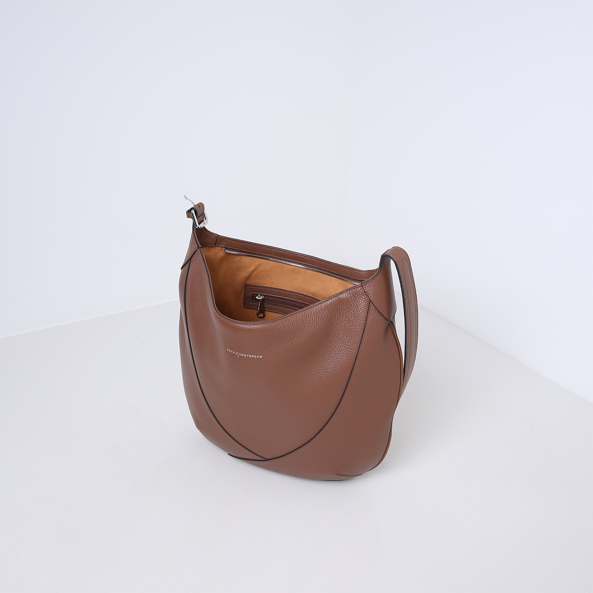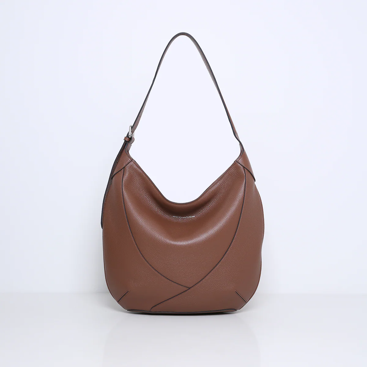 Der Ledershopper DREW verbindet mühelos Stil mit Funktionalität. Seine mittlere Größe bietet genügend Platz für Ihre täglichen Essentials, während sein einzigartiges Design mit einer halbrunden Form und geometrischen Linien sowohl der Vorder- als auch der Rückseite einen modernen, grafischen Look verleiht.