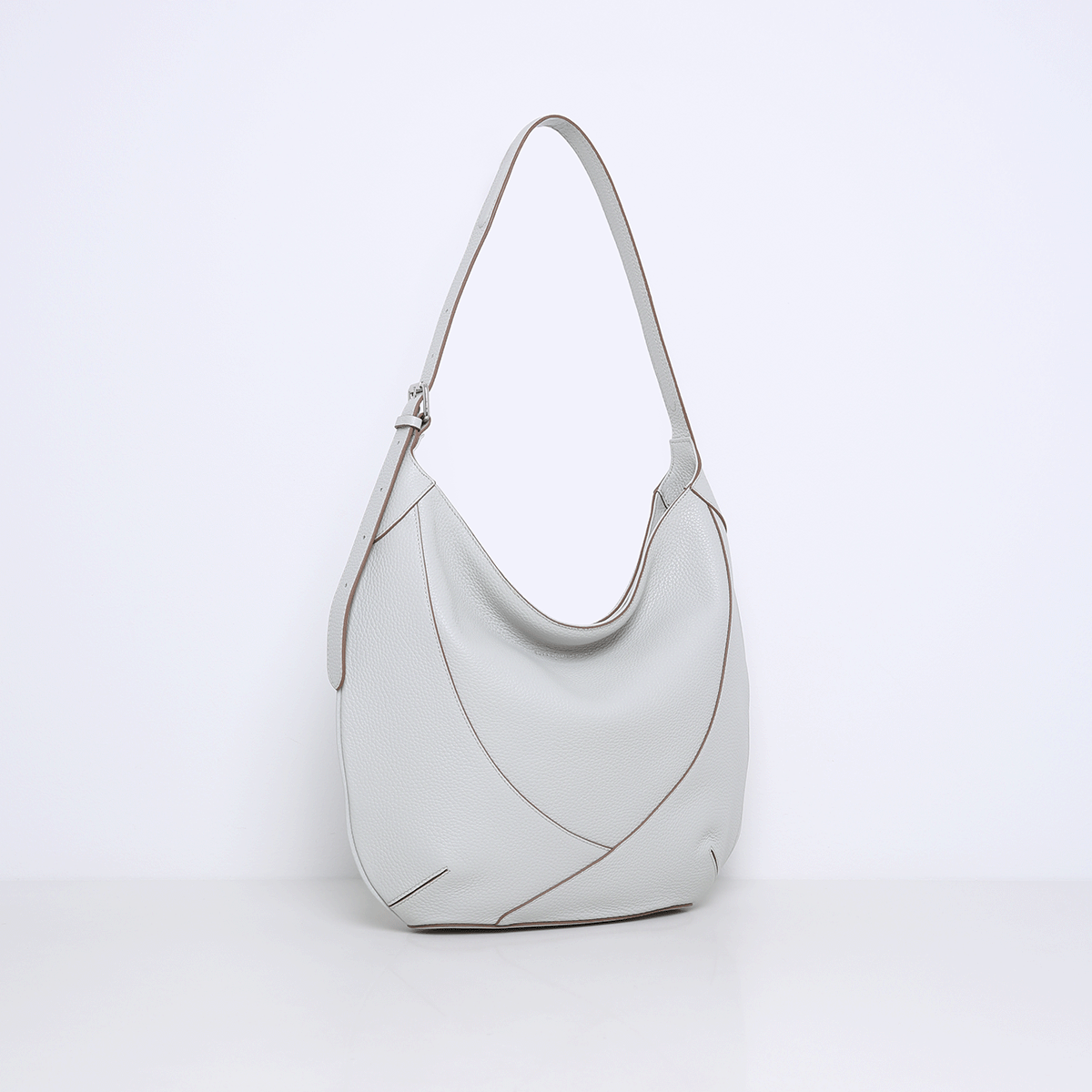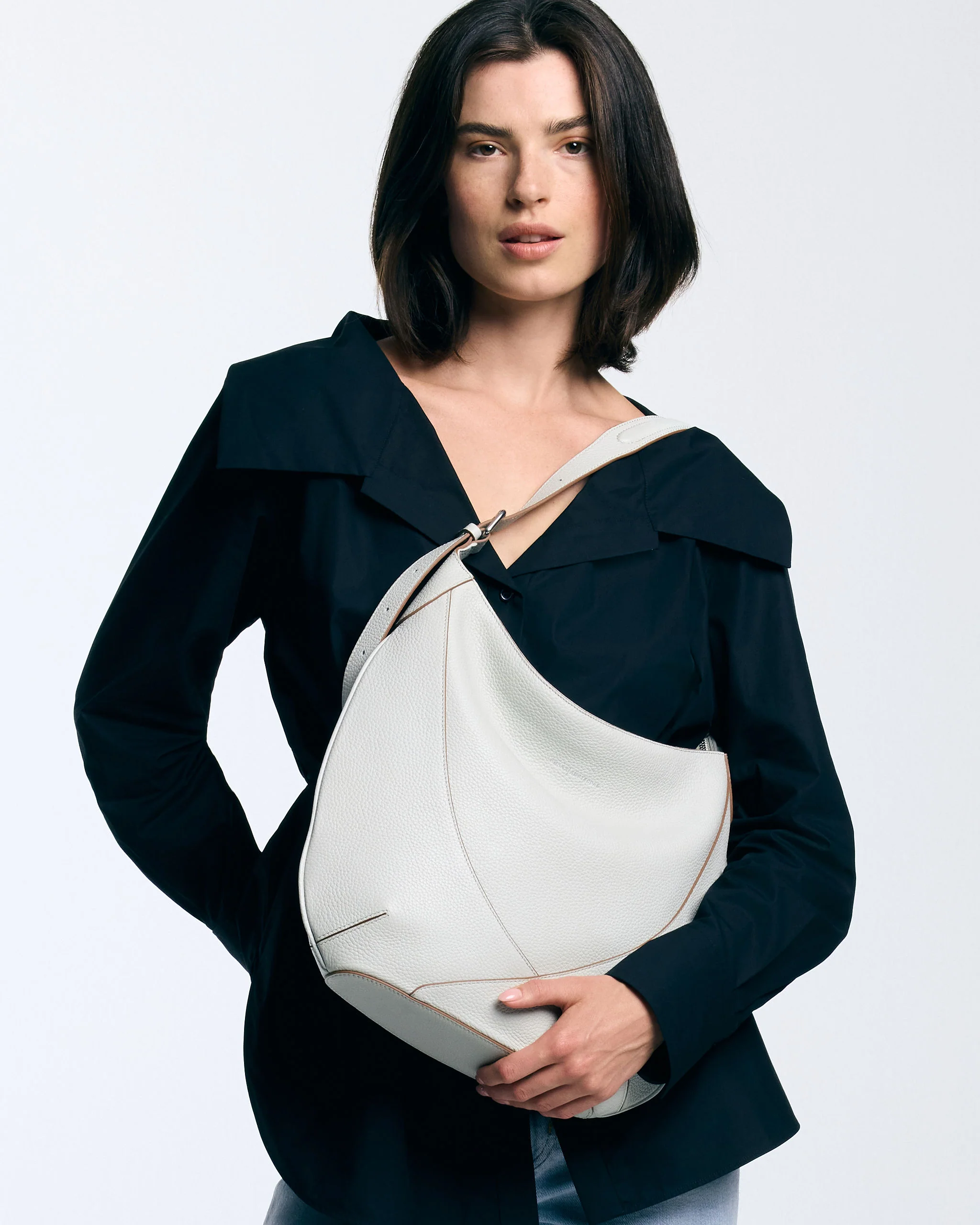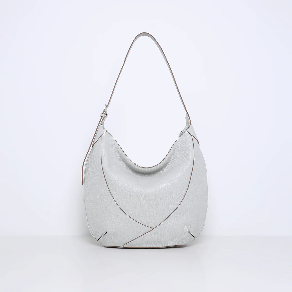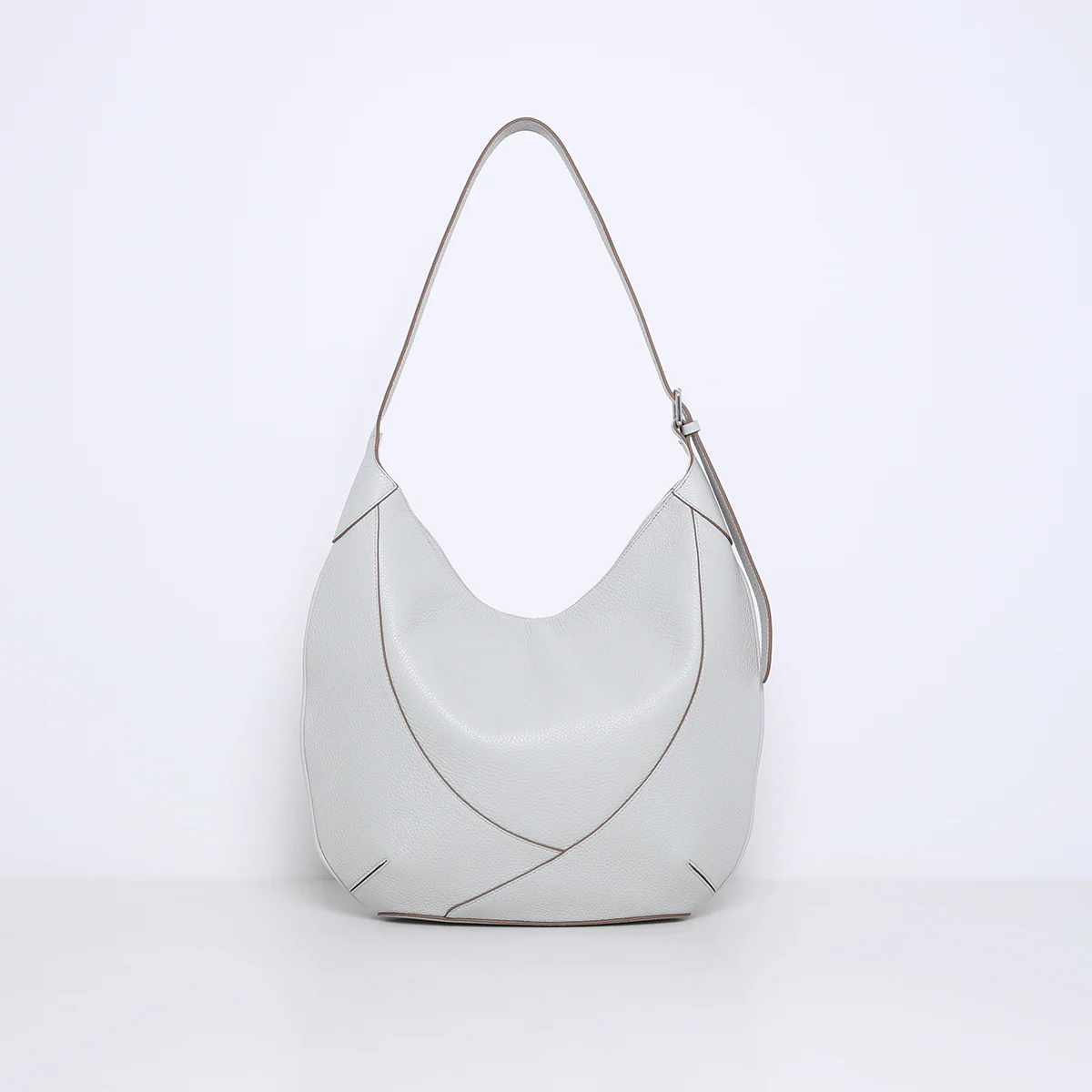 Der Ledershopper DREW verbindet mühelos Stil mit Funktionalität. Seine mittlere Größe bietet genügend Platz für Ihre täglichen Essentials, während sein einzigartiges Design mit einer halbrunden Form und geometrischen Linien sowohl der Vorder- als auch der Rückseite einen modernen, grafischen Look verleiht.